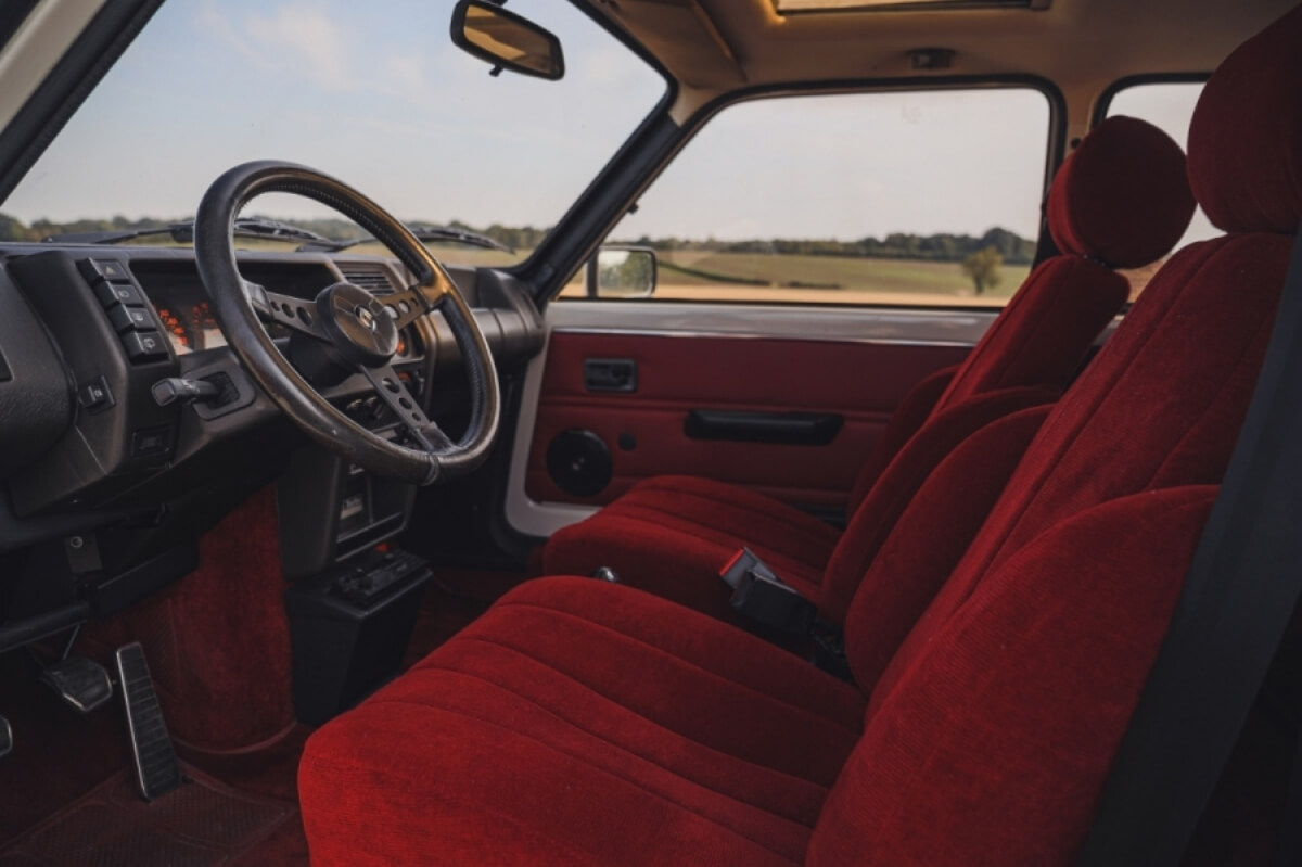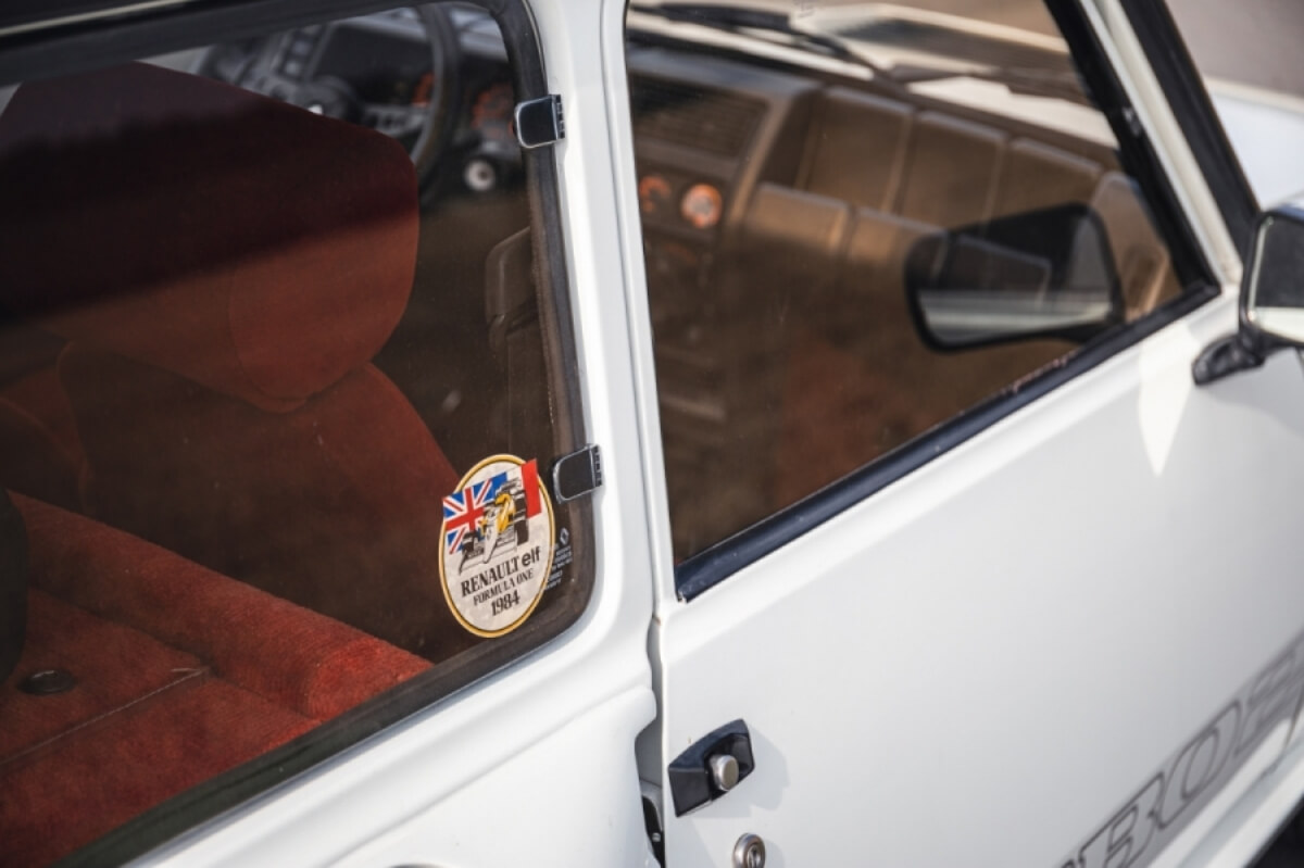 Este ejemplar en particular está terminado en color Pearl White con un llamativo interior de terciopelo rojo y llantas Turbo 2 específicas de este modelo. Fue entregado nuevo en marzo de 1983 y no llegó al Reino Unido hasta febrero de 1985. Por aquel entonces, el Renault 5 Turbo 2 -conoce su historia- acumulaba 2.333 kilómetros en su marcador y ha pertenecido a Matthews desde su llegada a territorio británico, acumulando un total de 46.992 km.