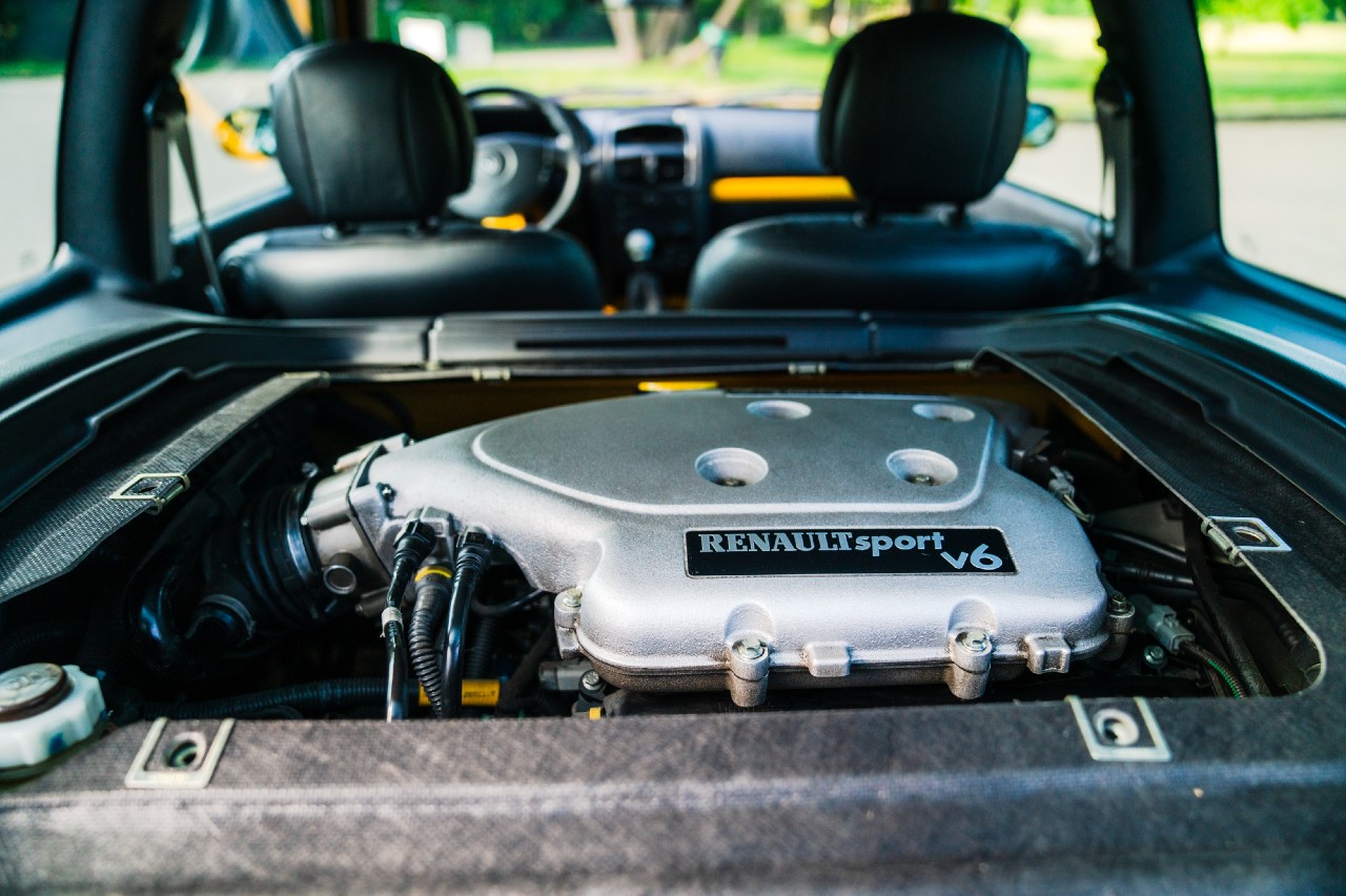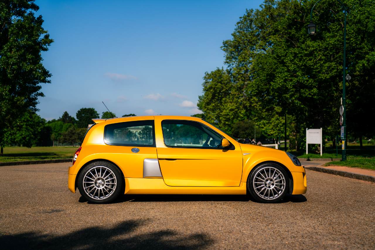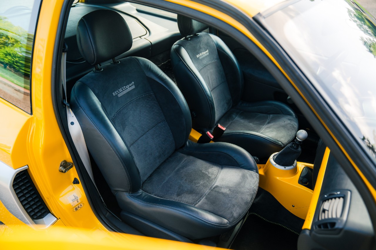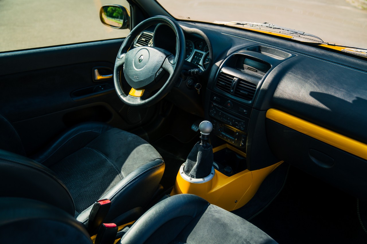 Éste es un ejemplar de 2005, por lo que entra dentro de lo que es el Clio V6 Fase 2. De ésta solo se fabricaron 1.309 unidades, siendo la que se subasta la número 1.291 y que destaca porque está acabada en color Liquid Yellow, que no es uno de los más habituales, y es todavía más raro por su combinación con el volante a la izquierda.