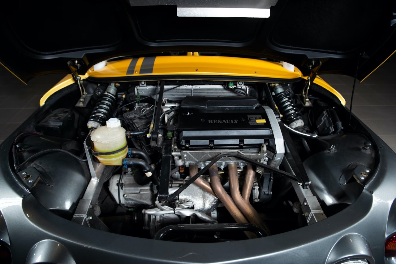 El Renault Sport Spider a subasta está impulsado por un motor de cuatro cilindros y 2.0 litros atmosférico que entrega 148 CV, ligado a un cambio manual de cinco relaciones que manda la potencia al eje trasero. Una potencia elevada, si se tienen en cuenta sus 930 kg.