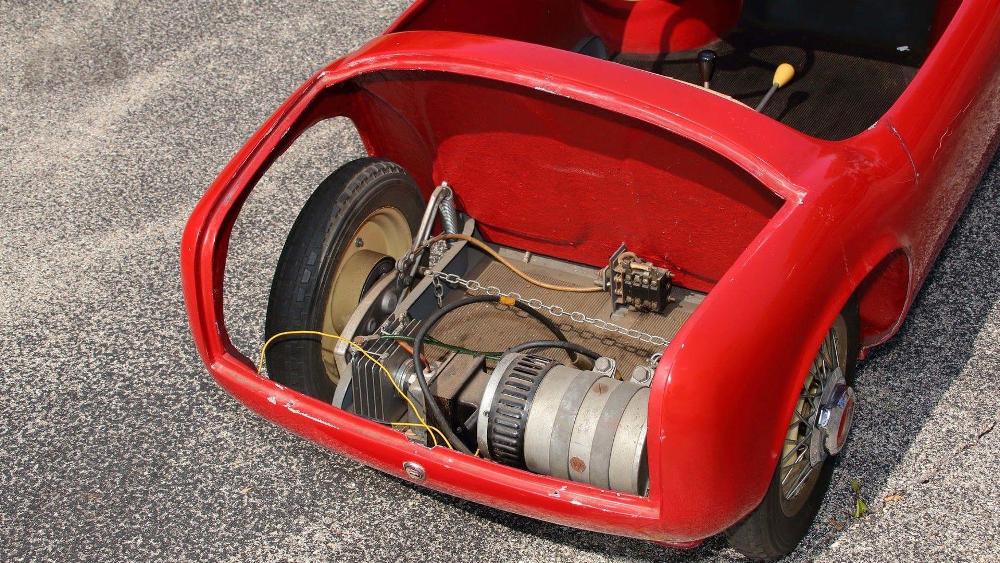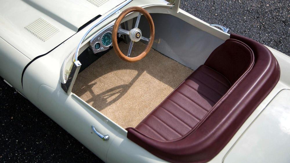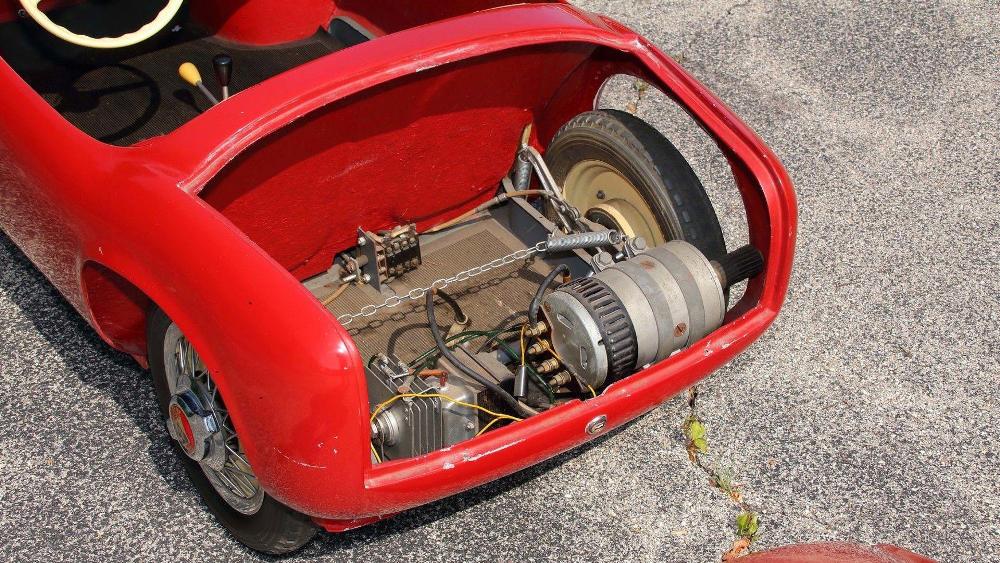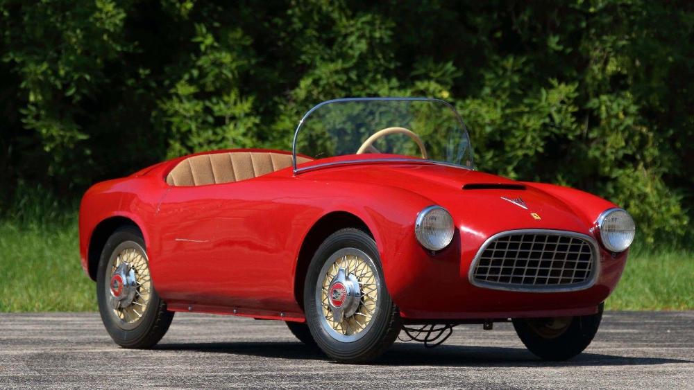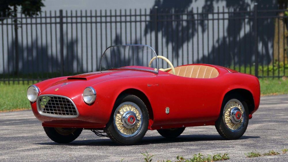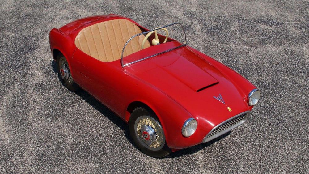 La segunda de estas espectaculares réplicas de coches para niños que saldrá a subasta es un ‘Baby Ferrari’ Bimbo Racer de 1956 que originalmente fue propiedad del hombre de negocios E.L. Cord. Fabricado a mano por S.I.L.A. en Turín (Italia), y diseñado por Giovanni MIchelotti, el coche está equipado originalmente con un motor eléctrico de 12V y sus respectivos controles, carrocería de fibra de vidrio con pintura roja correspondiente al período, neumáticos Pirelli y un interior de cuero. Su precio de venta oscila entre 20.000 y 30.000 dólares (entre 16.927 y 25.390 euros).