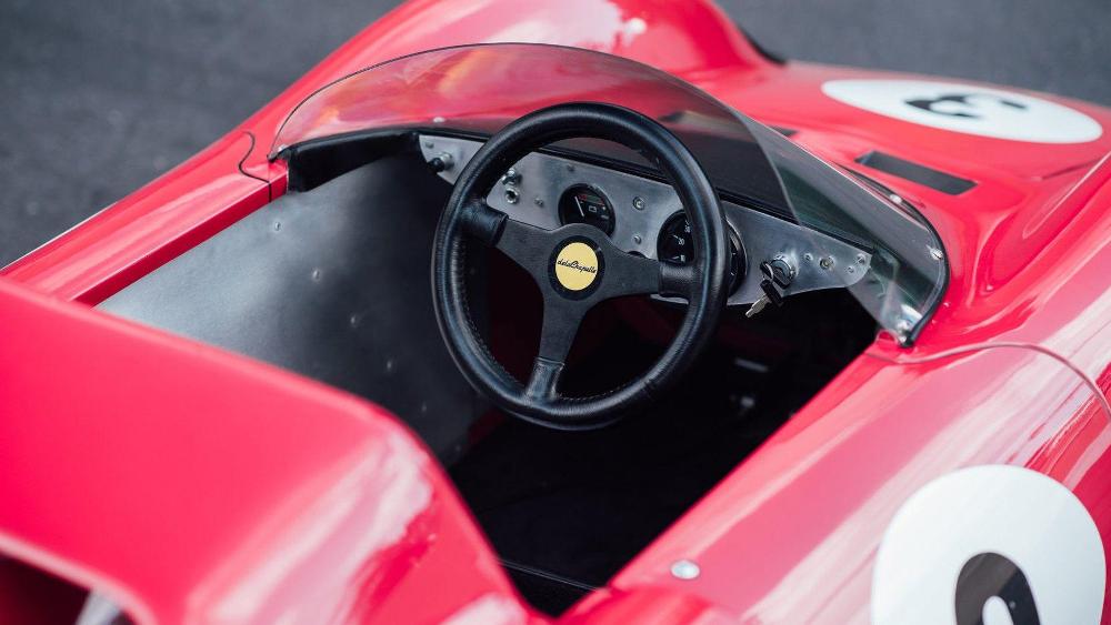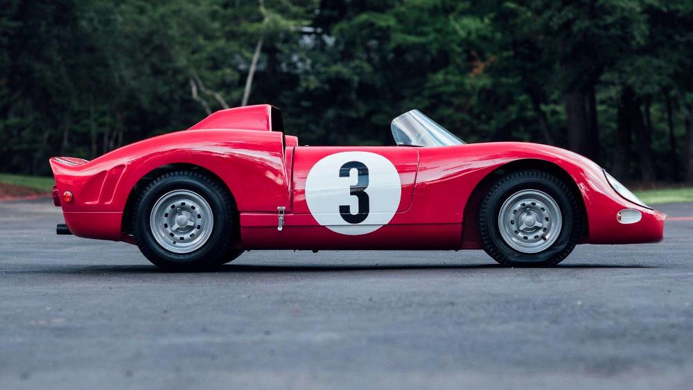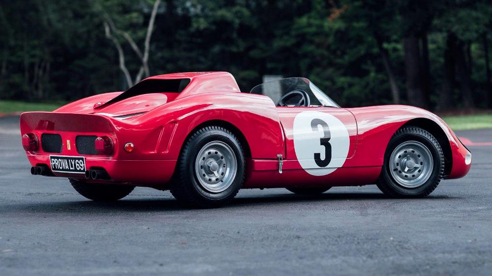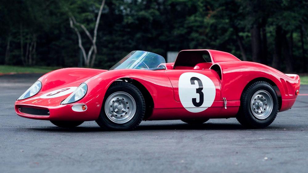 El primero de ellos es una réplica del Ferrari 330 P2 Le Mans de 1969, la cual está terminada en Rosso Corsa con el número 3 dentro de un círculo blanco en el capó, las puertas y el maletero. El modelo, a escala 2/3 fue construido por De La Chapelle y cuenta con un chasis de acero con carrocería de fibra de vidrio, así como un motor Honda de 2,5 CV que le permite alcanzar una velocidad punta de 40 km/h. Las tasaciones iniciales estiman que podría alcanzar un precio de venta durante la subasta de entre 35.000 y 40.000 dólares (entre 29.622 y 33.854 euros).