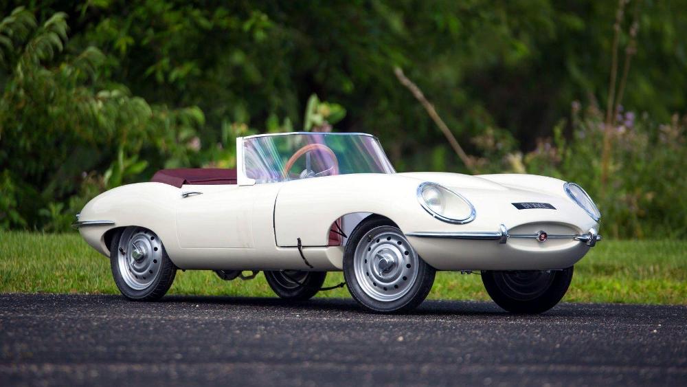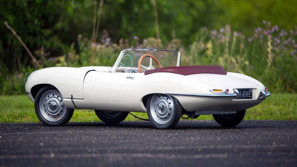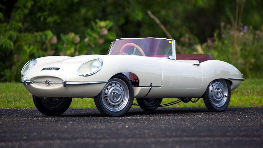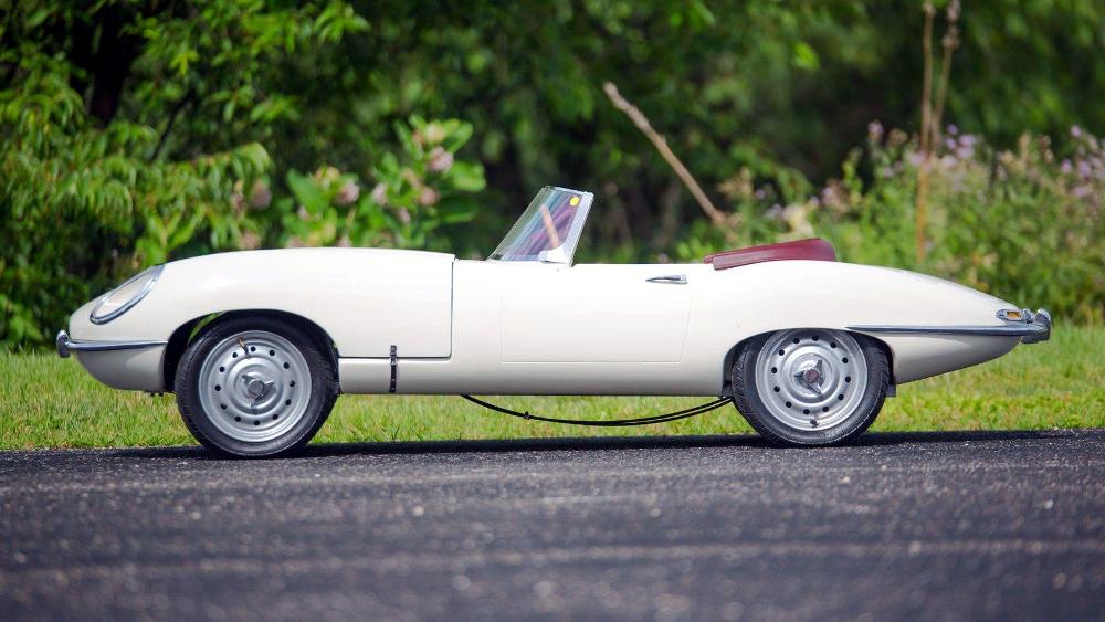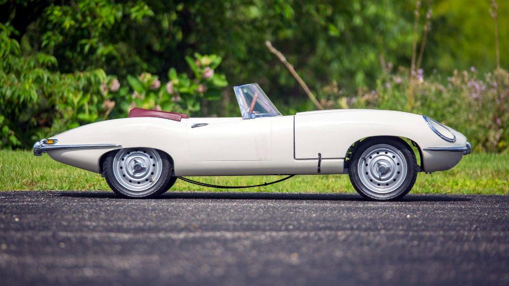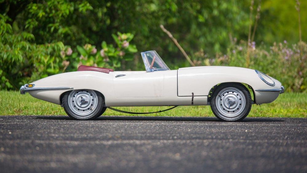 El último de los coches para niños que buscarán comprador del 16 al 19 de agosto en Monterey es el Jaguar E-Type de 1961. Su exterior está terminado en pintura beige clásica y combina con un interior en rojo y un volante de madera. Equipa un motor de gasolina y un conjunto de faros totalmente funcionales. Su precio de venta estimado se ha tasado entre los 10.000 y los 15.000 dólares (entre 8.463 y 12.695 euros).