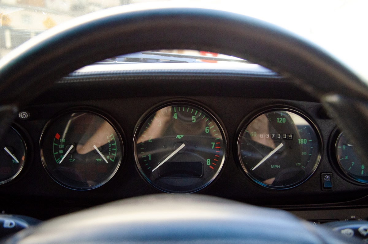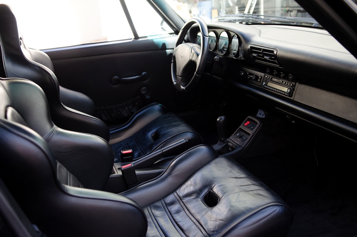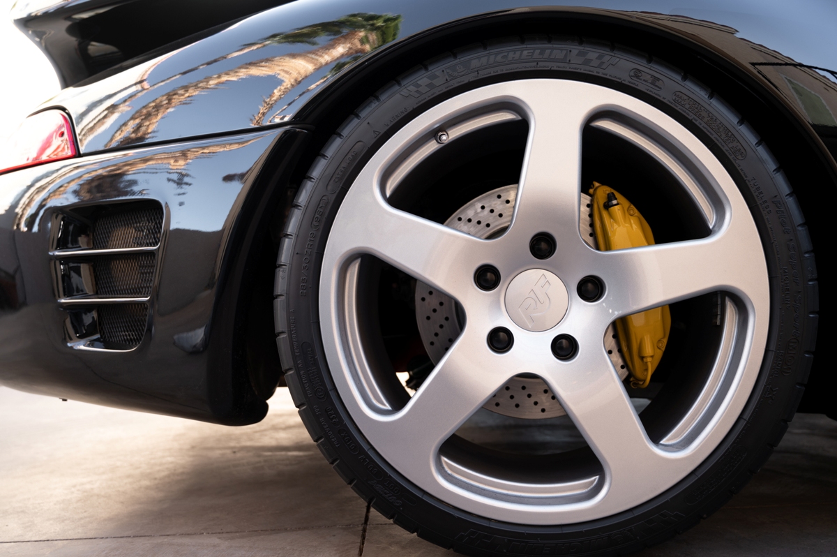 Volviendo al coche, este RUF Turbo R de 1998 fue entregado nuevo a su primer propietario en el sur de California en mayo de 2000. Entre su equipamiento se incluía una jaula antivuelco, refuerzos en el tren delantero, suspensión deportiva, llantas de aluminio de 18 pulgadas y pinzas de freno acabadas en color ‘Yellowbird’ características de la compañía. El exterior está terminado en color negro, con los parachoques delantero y trasero heredados del RUF CTR2, al igual que la cabina de cuero. Dentro se puede encontrar una pareja de asientos deportivos con arneses, pedales de aluminio, volante y palanca de cambios específicos, y alfombrillas con el logotipo RUF en color amarillo.