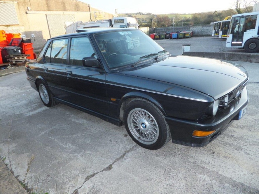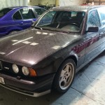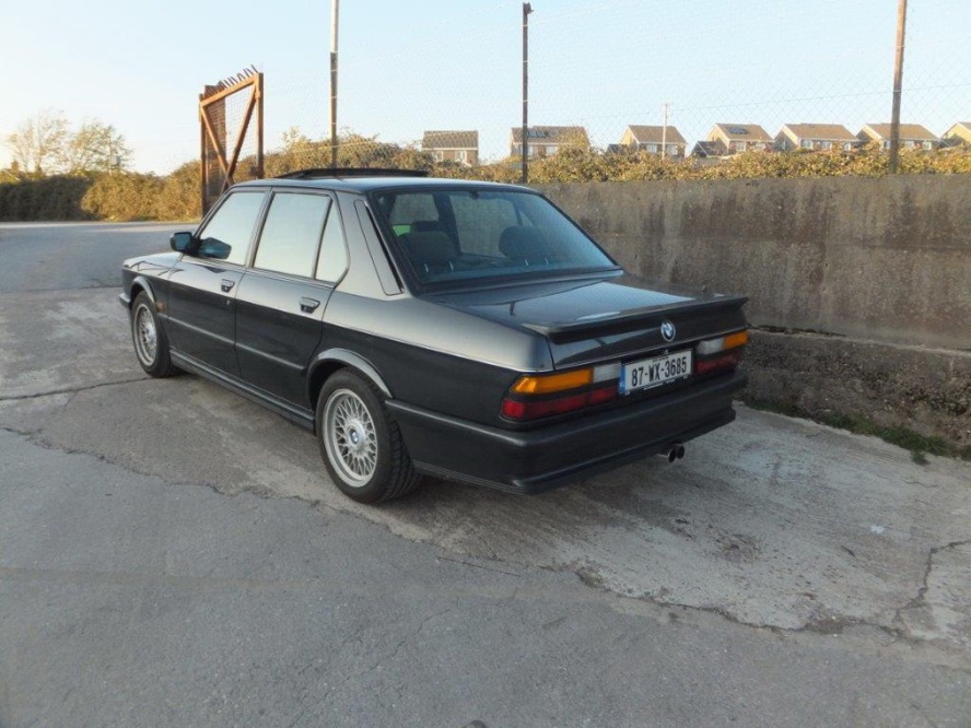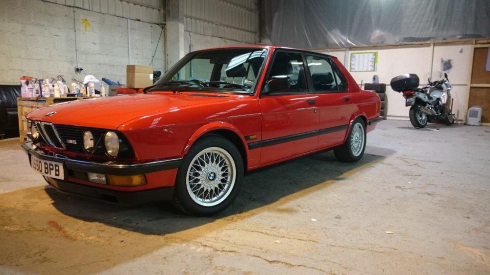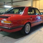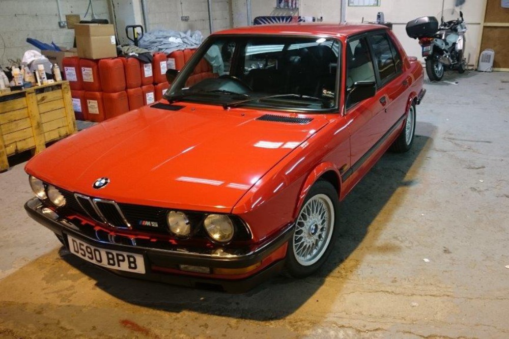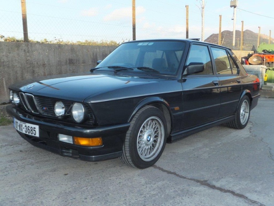 Empecemos por la pareja de E28. El ejemplar rojo es un autentico BMW M5 E28. Fue lanzando como la berlina más rápida del mundo, gracias en parte a su motor M88, un bloque DOHC de seis cilindros en línea, 3,5 litros y 24 válvulas que entregaba 282 CV. Fue construido en Alemania y es uno de los ejemplares más raros de los BMW modernos y cuenta con 283.245 kilómetros rodados. Su pareja es un modelo con la insignia M535i, es decir, una variante más deportiva del 535i aunque seguía sin contaba con ninguna pieza de la división M.