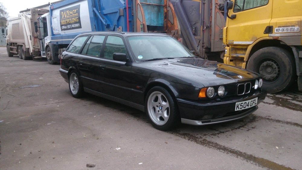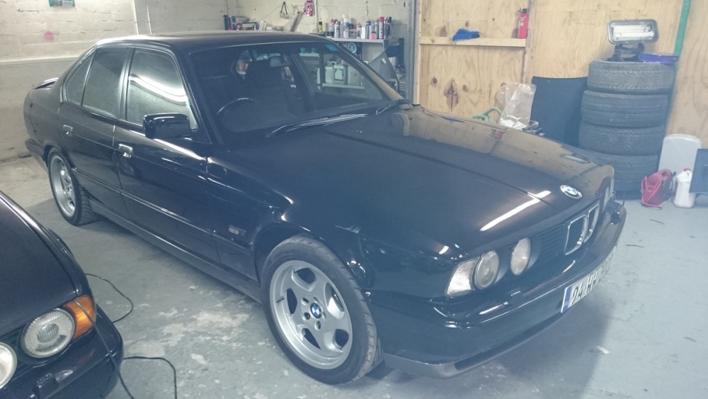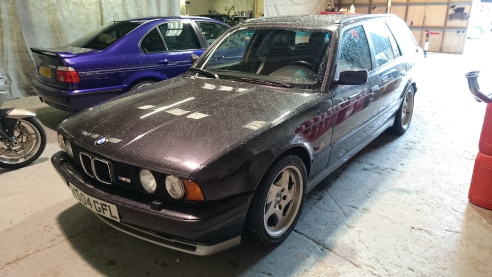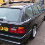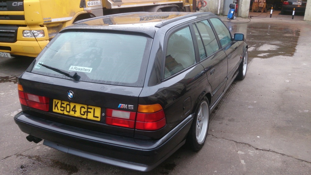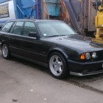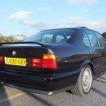 El siguiente paso en la escala generacional del BMW M5 es el E34, en cuyo caso la colección cuenta con dos ejemplares con carrocería sedán y uno Touring. El BMW M5 E34 fue construido a mano, como el E28, lo que le proporciona un atractivo añadido de cara a los coleccionistas y tan solo 891 unidades poseían la carrocería familiar Touring. Ambos están equipados con un motor de seis cilindros en línea y 3,8 litros que entrega 335 CV de potencia, mientras que el ejemplar azul metálico Macao, con las preciosas llantas turbina de 17 pulgadas, está alimentado por el mismo bloque, aunque es de 3,6 litros y rinde 311 CV.
