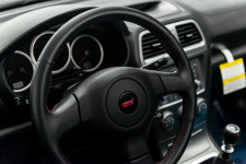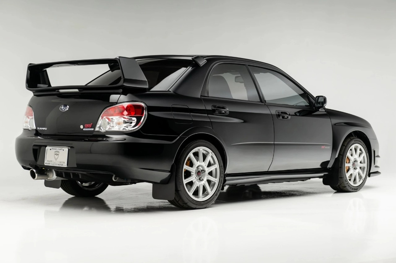 Esta unidad salió de fábrica en 2007 y está acabado en color Obsidian Black Pearl con el interior en una combinación negro y azul. Asimismo, luce unas llantas forjadas BBS de 17 pulgadas con acabado plateado calzadas con unos neumáticos Bridgestone Potenza RE070 de 225/45 de 2014, unas pinzas de freno doradas Brembo y detalles específicos STi, como el spoiler del techo y el maletero, los faldones laterales y un deflector de aire delantero.
