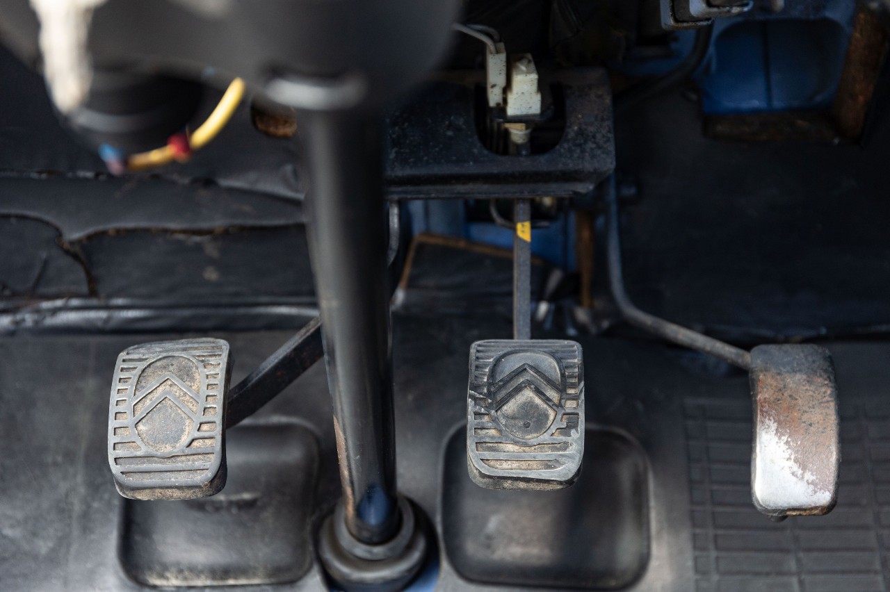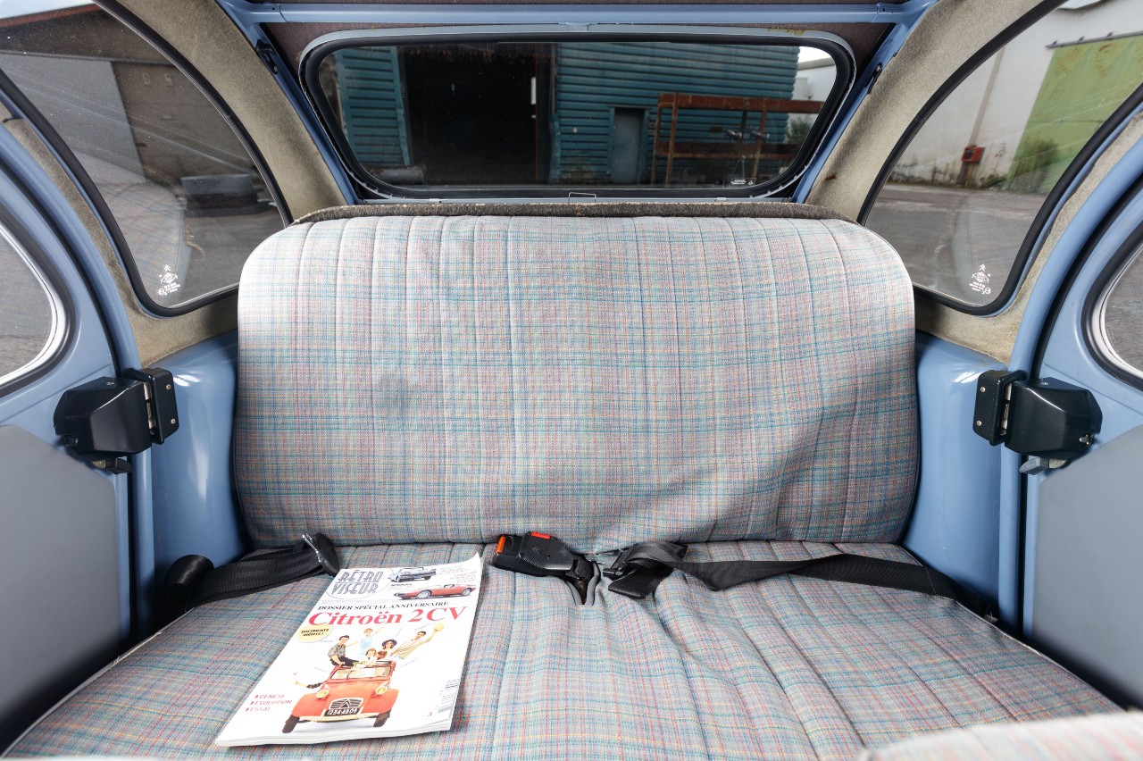 Este 2CV6 Special fue producido en 1988 y puesto en circulación el 25 de julio de ese año, justo dos años antes del cese de la producción del modelo. Sorprende su buen estado de conservación. Tiene la carrocería pintada en azul, a juego con una preciosa tapicería de cuadros en azul y gris. Cuenta con asientos delanteros separados, algo que formaba parte del equipamiento opcional.