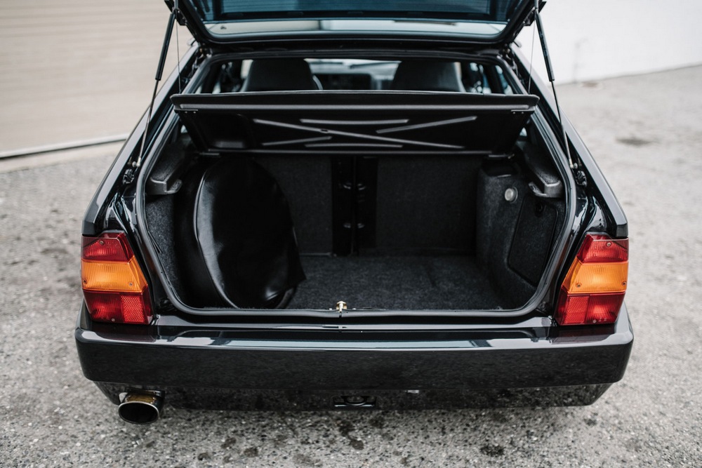 Esta motorización está asociada a una caja de cambios manual de cinco relaciones, que transmite la potencia a las cuatro ruedas con un sistema que cuenta con diferenciales autoblocantes en ambos ejes. Así, podía completar el paso de 0 a 100 Km/h en 6,3 segundos y alcanzar una velocidad máxima de 219 km/h, datos increíbles para un compacto de su época. Y todo esto combinado con un exterior de lo más agresivo, con unas preciosas llantas Speedline Monte Carlo, y un interior lujoso pero deportivo.