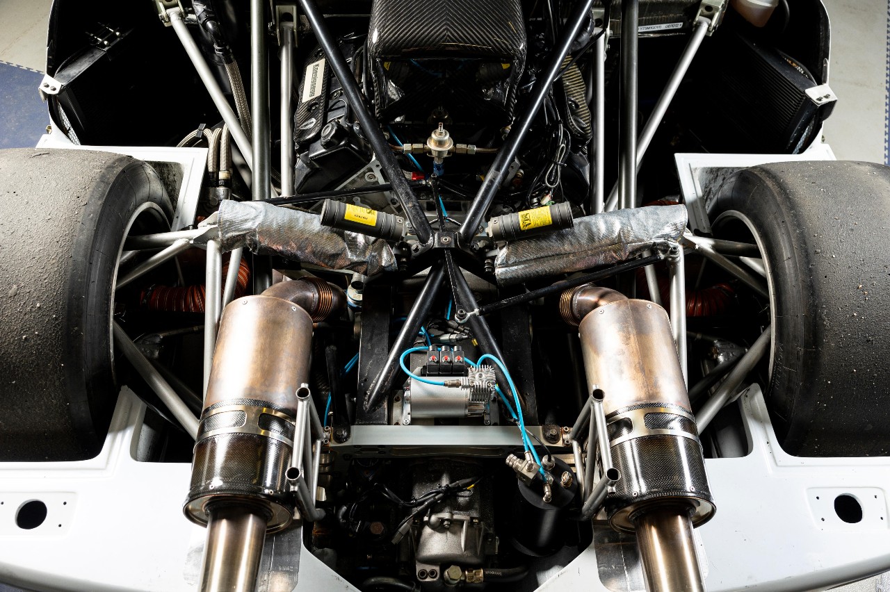 Bajo el capó trasero es oculta un V8 atmosférico de 5.0 litros y 32 válvulas que desarrolla 600 CV, unido a un cambio secuencial. El coche está en perfecto estado y conserva, incluso, los neumáticos Michelin de competición originales. La organización Masters Historic Racing lo ha autorizado para competir en la Masters Endurance Legends Series, en caso de que el próximo propietario así lo quiera.