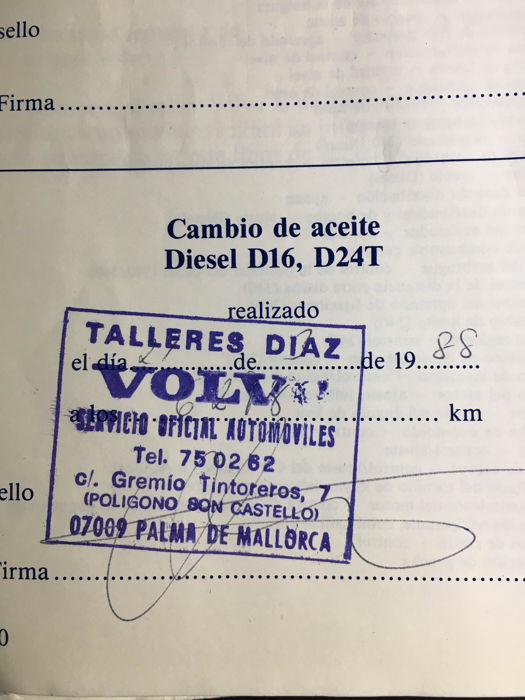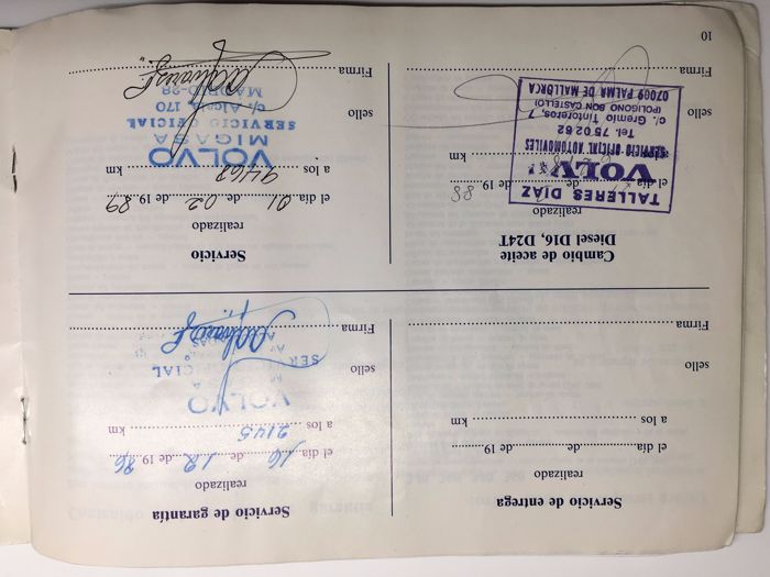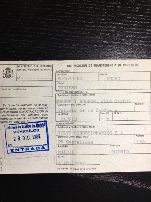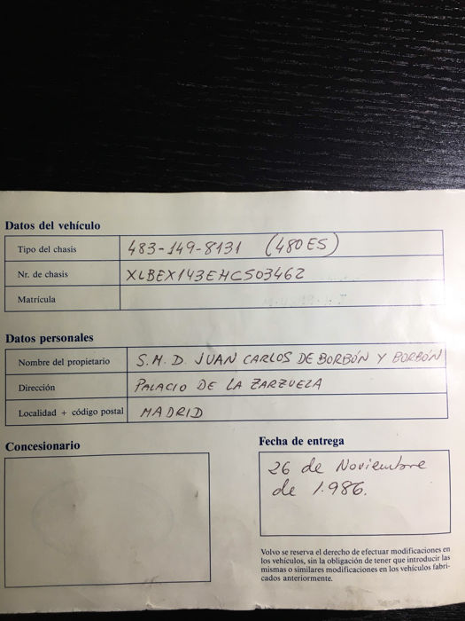 Esta unidad ha sido puesta a punto con un cambio de aceite y filtros, de la correa de distribución, de la servicio y de la bomba de agua. Además, se ha recargado el aire acondicionado y limpiado el radiador. Asimismo, incluye la documentación que acredita la originalidad del vehículo, el libro de servicio Volvo a nombre de S.M. Juan Carlos de Borbón y Borbón con los sellos oficiales, la fotocopia del permiso de circulación del vehículo expedido el 25 de Noviembre del 1986 a nombre de Juan Carlos de Borbón y Borbón, el primer certificado de seguro de la Mutual Madrileña y el original de la notificación de transferencia de vehículo, por el cual S.M. Juan Carlos de Borbón y Borbón transfiere el vehículo a Volvo Concesionarios S.A. el 28 de Diciembre de 1988.