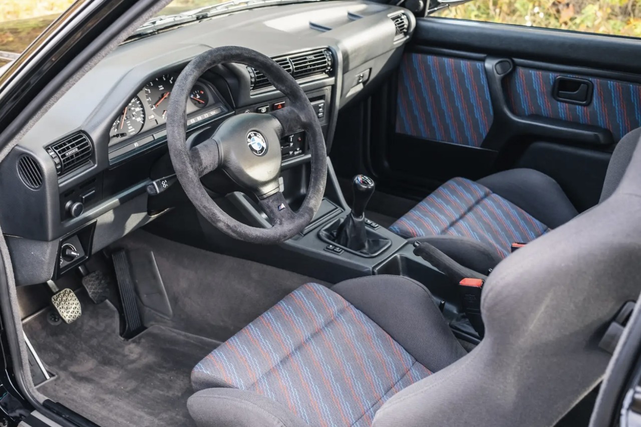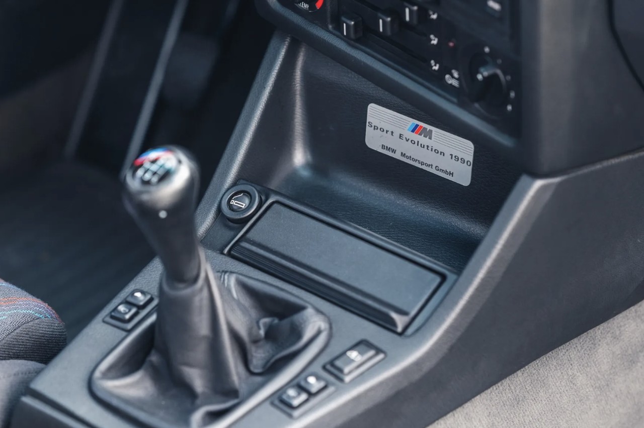 Durante la temporada de carreras intermedia, las normas de la FIA redujeron las cuotas de homologación a sólo 500 chasis, y así nació el M3 Sport Evolution (que incluía 100 chasis de carreras para clientes y 500 chasis de producción). Esta unidad se entregó en Reino Unido en abril de 1990, está terminada en color Negro Azabache, combinada con una tapicería de tela Motorsport Design Antracita, y tiene sólo 42.942 kilómetros. En todo este tiempo, apenas ha tenido tres propietarios.