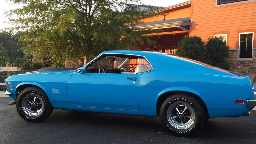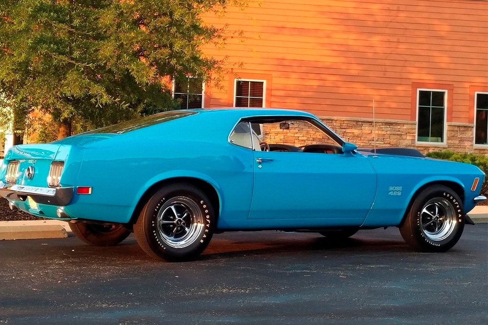 Fabricado el 18 de septiembre de 1969, este Ford Mustang Boss 429 Fastback se entregó en Carolina del Norte terminado en un azul espectacularmente atractivo y con una cabina de color blanco. Todo en este coche es original, incluido su potente motor V8 de 375 CV ligado a una transmisión de cuatro velocidades.