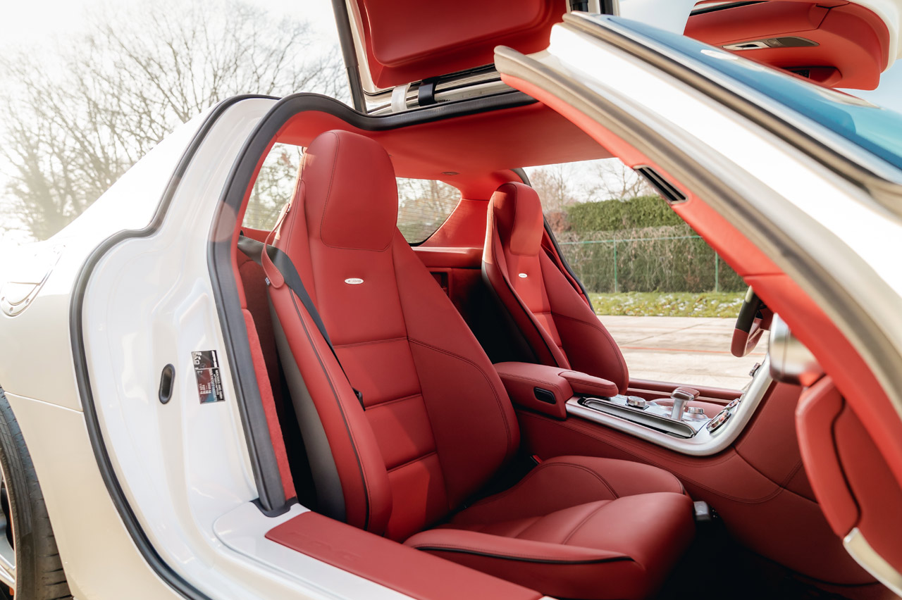 Este ejemplar concreto salió de la cadena de montaje en 2011 y durante sus casi 12 año de vida, a penas a recorrido 77 kilómetros. Presenta una carrocería rematada en color blanco “Designo Mystic White 2” con llantas AMG de 10 radios con 19 y 20 pulgadas en el tren delantero y trasero, respectivamente; y monta el conjunto de frenos carbonocerámicos con pinzas en dorado.