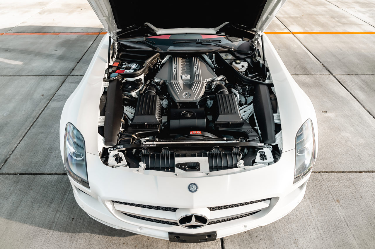 Porque en comparación con los V8 que se montaban en los turismos de AMG más convencionales de la época, el motor del SLS AMG (con denominación M159) presentaba numerosas particularidades. Como por ejemplo, un sistema de admisión completamente rediseñado, válvulas y árboles de levas optimizados, colectores de escape distintos para mejorar el flujo del aire o un sistema de lubricación por cárter seco.