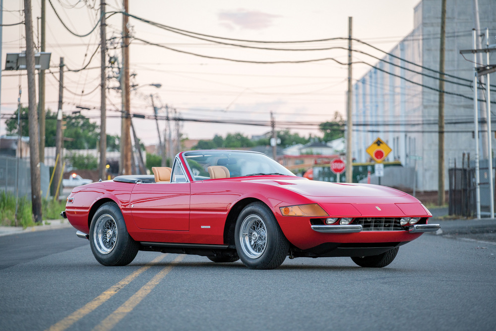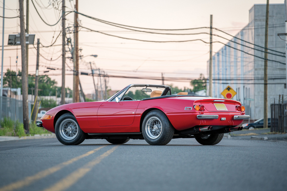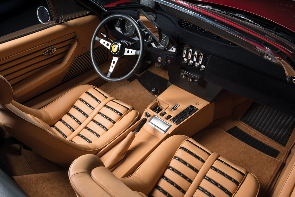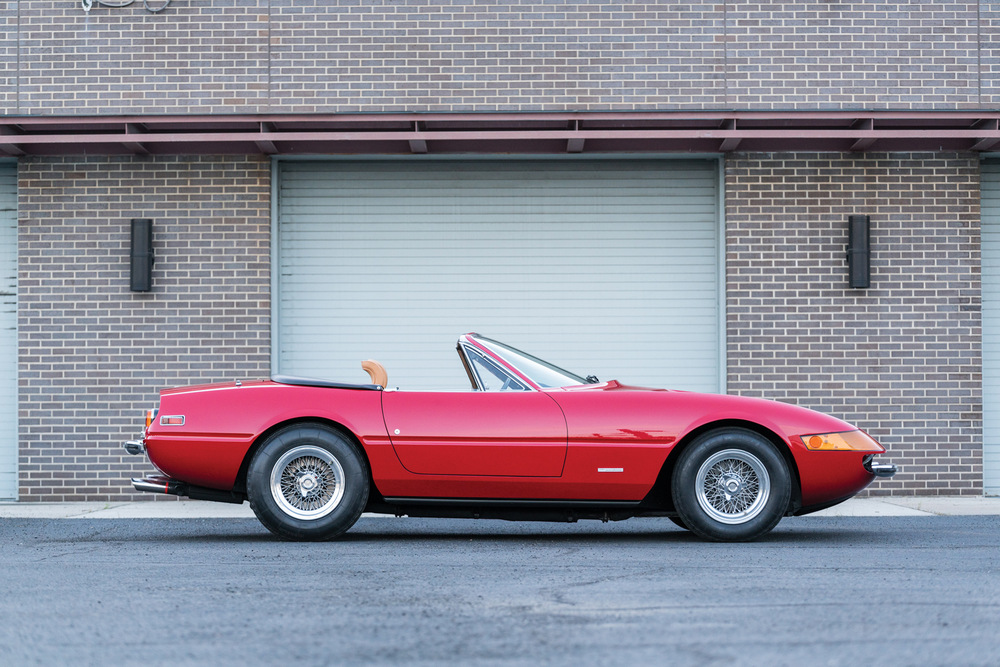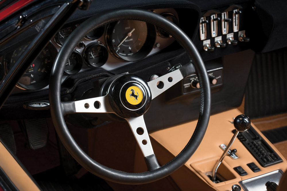 Este Ferrari Daytona Spider que sale a subasta es una unidad originalmente destinada al mercado estadounidense, donde fue entregado a su primer propietario en 1973. Después de este, tuvo otros dueños hasta que finalmente acabó en manos del actual, que lo ha disfrutado durante los últimos 15 años. Su pintura negra original fue sustituida por otra roja (Rosso Corsa), pero excepto por esto, el resto está tal y como salió de fábrica.