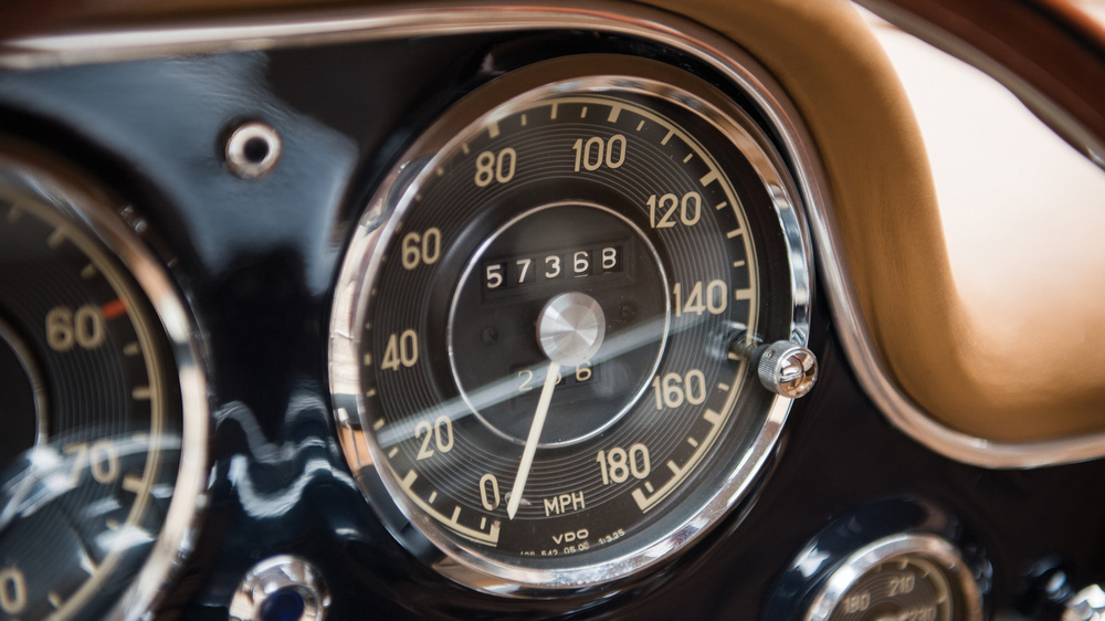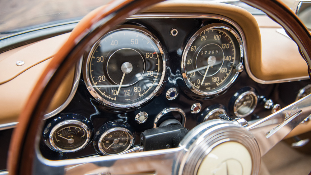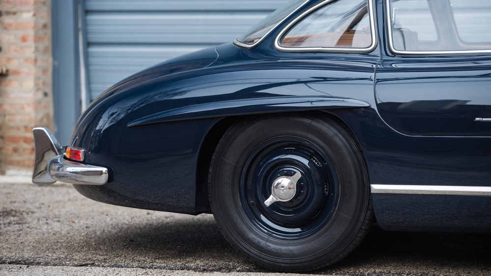 Esta unidad concreta del Mercedes 300 SL de 1954 es uno de los 167 coches que fabricó Mercedes en la planta de Aktiengesellschaft Sindelfingen (en Stuttgart) el primer año de producción del modelo. Un coche que ha estado muy bien cuidado a lo largo de toda su vida. En el año 2007 su propietario mandó restaurar el chasis, mientras que el motor fue reconstruido de arriba abajo en 2009, procesos que quedan reflejados en la documentación adjunta que viene con el vehículo, que incluso incluye fotografías detalladas.