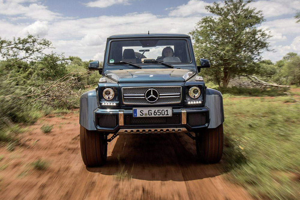Recordemos que el Mercedes-Maybach G650 Landaulet está construido sobre la base del colosal Mercedes G500 4×4², una variante especial de la Clase G que, entre otras cuestiones, destaca por montar unos ejes pórticos con doble amortiguador por rueda que le dotan de una altura libre al suelo descomunal, pues alcanza los 450 mm. El conjunto llanta/neumático es más grande de lo que parece, pues equipa unas ruedas en medida 325/55 R22 en ambos trenes.