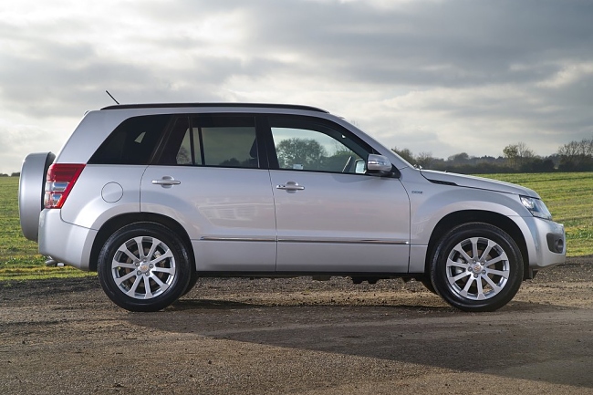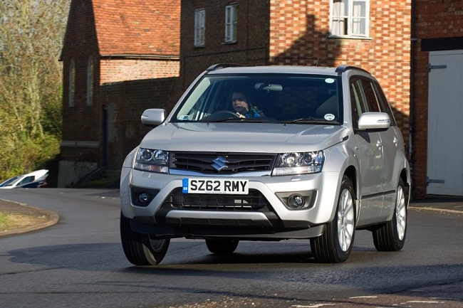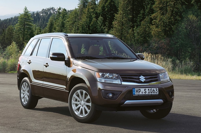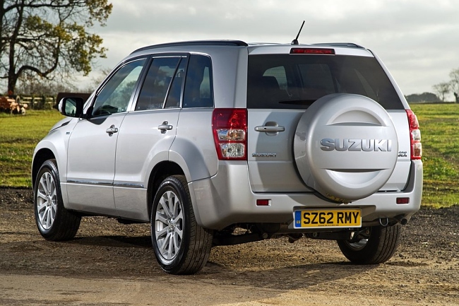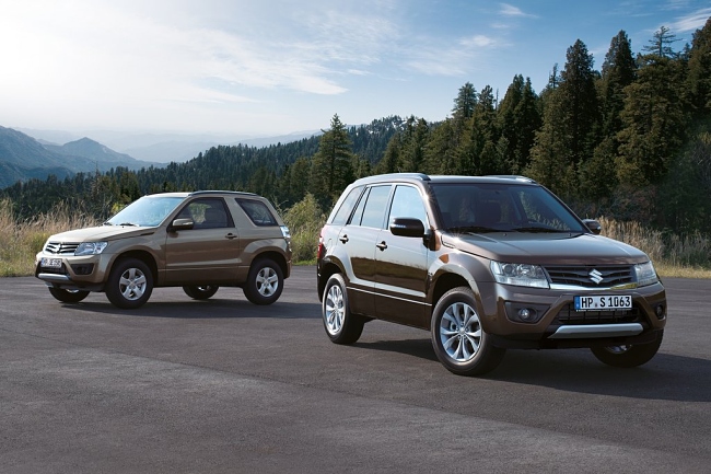 En el frontal de vehículo, tanto la parrilla como el parachoques han sido rediseñados y ahora lucen un aspecto más anguloso. El Suzuki Grand Vitara 2013 incorpora unos grupos ópticos oscurecidos y llantas de aleación actualizadas de 17 ó 18 pulgadas. Si bien, en la zaga y por petición de los clientes, el nuevo Grand Vitara recupera la rueda de repuesto –en medida 225/70 R16- que se vuelve a situar sobre el portón del maletero y sustituye al kit reparapinchazos.