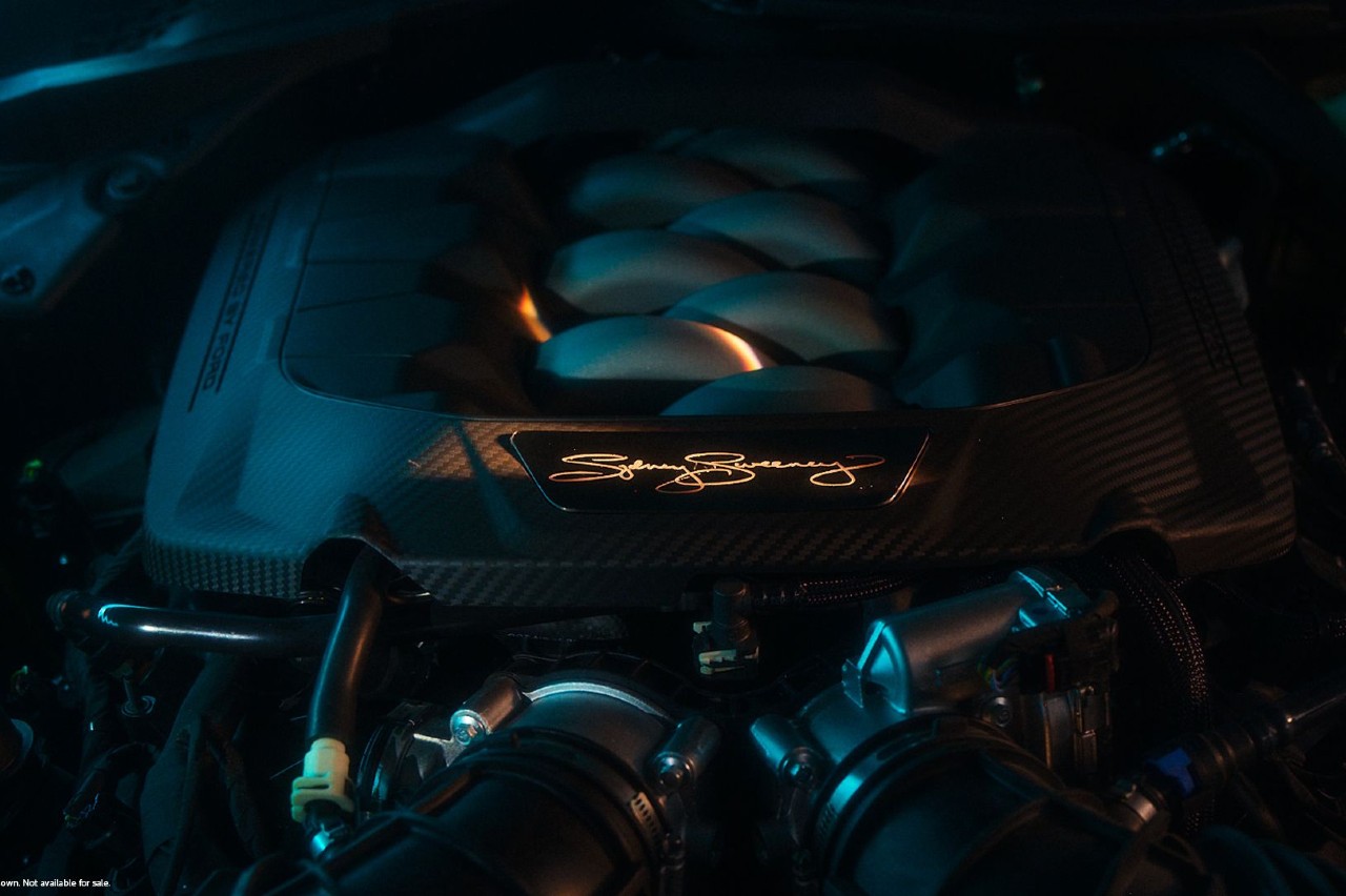 El Mustang de Sydney Sweeney está inspirado en un modelo de 1965 que tiene la actriz y es una combinación entre lo retro y lo moderno, con un estilo personal único mediante texturas personalizadas y detalles exclusivos, como la carrocería terminada en Robin's Egg Blue con una capa transparente de cristal triturado, unas elegantes llantas cromadas de 20 pulgadas, la firma de Sweeney estampada en el motor del coche y el logo en forma de corazón de Ford X Sydney Sweeney tras los pasos de rueda delanteros, en los umbrales de las puertas, el salpicadero y en los reposacabezas.