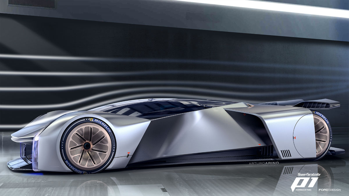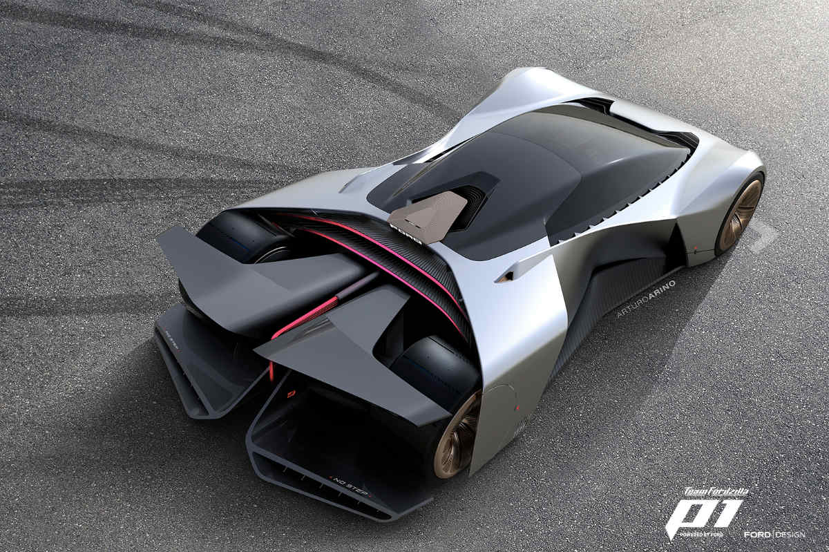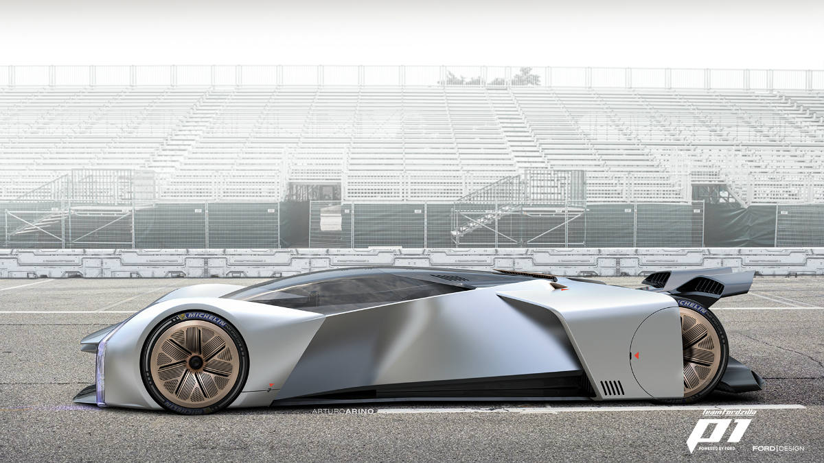 En la encuesta final se presentaron dos alternativas y la ganadora, con un 83% de los votos, fue la de Arturo Ariño, diseñador de exteriores de Ford. Se inspiró en el Ford GT, pero presenta soluciones únicas como la tecnología de morphing en la carrocería, que permite variar su tamaño para ajustarse a las condiciones de cada circuito. Así, en trazados con largas rectas como LeMans, la alargaría, mejorando su estabilidad; mientras que en uno como Mónaco, más cerrado y ‘ratonero’, se acortaría para potenciar su agilidad.
