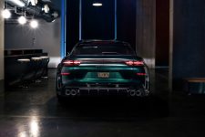 El Porsche Panamera Sport Turismo GrandGT de TechArt cuenta con un kit aerodinámico que radicaliza su aspecto. Está compuesto por un paragolpes delantero con entradas de aire más grandes, por unos pasos de rueda ampliados que aumentan considerablemente la anchura de la carrocería tanto delante como detrás o por un difusor trasero de generosas dimensiones.