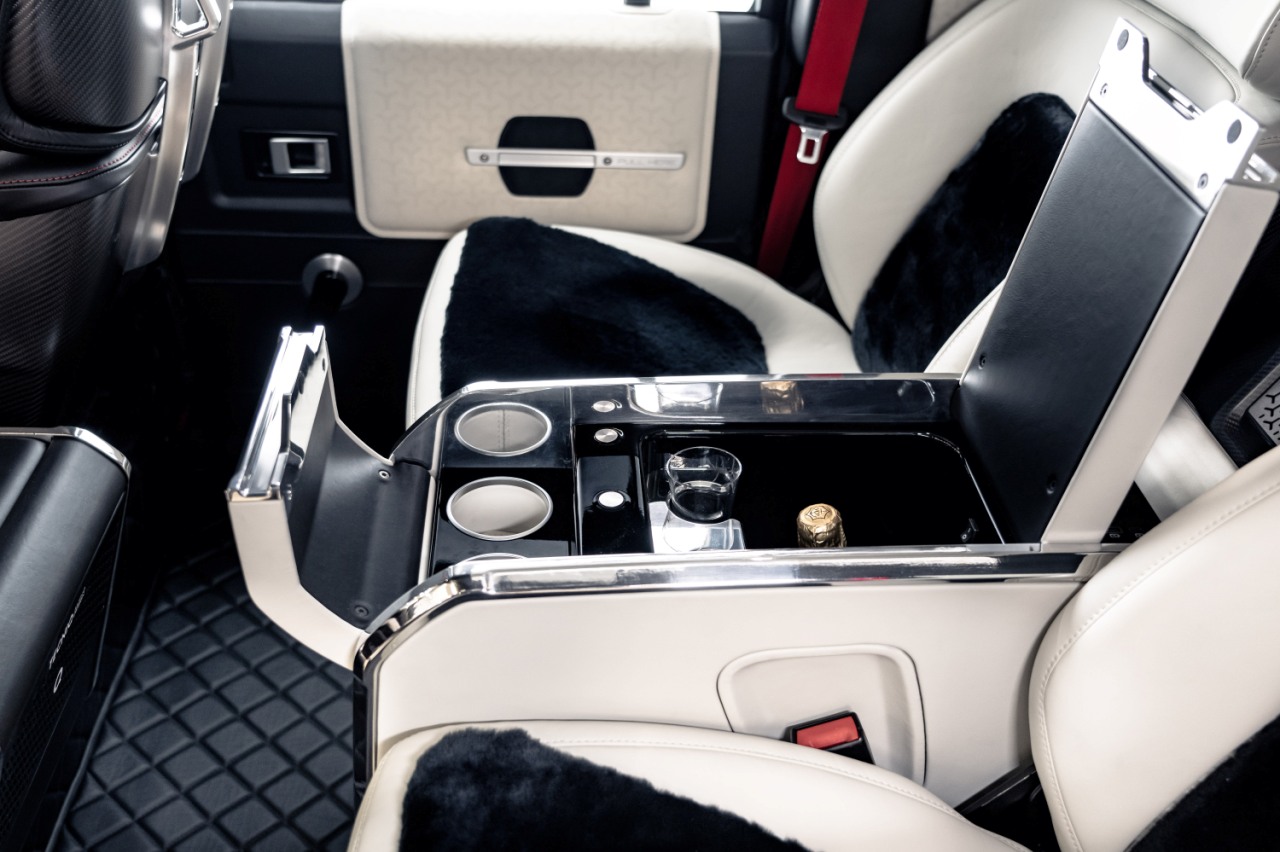 El interior del TECNIQ ‘Q40 Defender’ también ha sido personalizado. Con una configuración de 2+2 asientos de fibra de carbono, estas plazas están tapizados en cuero cosido a mano con inserciones de piel de oveja. La parte delantera está terminada en un acabado oscuro con un volante de nuevo diseño, un grupo de instrumentos y una consola central rediseñados. Mientras tanto, los asientos traseros lucen un acabado gris claro con una consola central. El compartimento de carga luce correas extraídas del compartimento del helicóptero.
