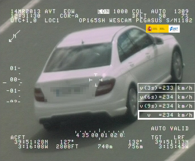 Este radar Pegasus se ha incorporado a uno de los 12 helicópteros de los que dispone la DGT. Al igual que los otros dos, consta de dos cámaras, una panorámica que facilita el seguimiento y captación de la velocidad y otra de detalle que tiene un objetivo que permite leer la matrícula del vehículo llegando incluso a poder detectar velocidades de hasta 360 km/h. Además, éste resulta operativos incluso a 300 metros de altura y a una distancia en línea recta con el vehículo controlado de un kilómetro.