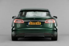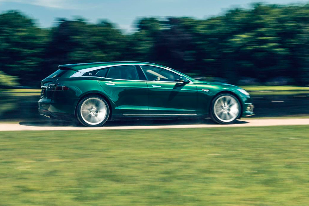 Como podrás ver, esta nueva variante brinda mucho más espacio a bordo, aunque precisamente la capacidad de carga no es uno de los hándicaps del Tesla Model S, como verificamos durante su prueba. La base se ha dejado intacta, pero la carrocería, que está bañada en un color verde con pequeños detalles dorados, sí ha sido modificada desde el pilar b hasta la zaga; ahora equipa un nuevo portón, alerón, limpialuneta, que está oculto; y luz de freno.