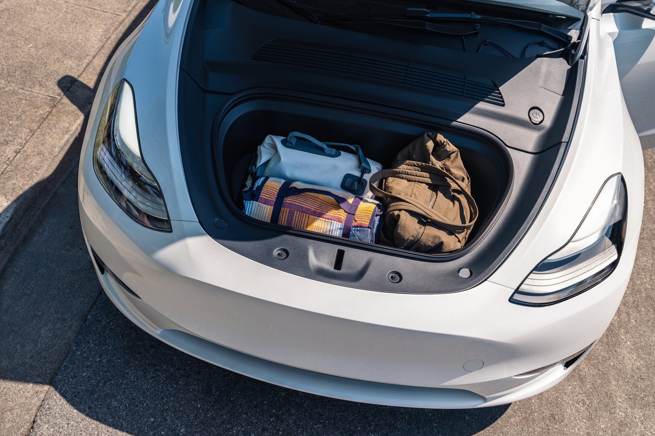 Otro de los puntos fuertes del Model Y de siete plazas es su maletero. Ofrece un total de 2.040 litros, contando con los 117 litros disponibles delante y los 367 litros detrás de la tercera fila. Incluso, si se utilizan las siete plazas, se pueden colocar dos maletas de mano en el maletero y dos bolsas grandes en el espacio delantero. Con cinco plazas, la capacidad de carga es de 753 litros, suficientes para llevar fácilmente cochecitos, patinetes o hasta camas plegables.
