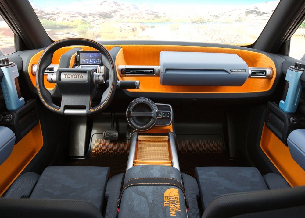 La cabina, por su parte, cuenta con un saco de dormir que se acopla a los asientos delanteros y actúa como un reposabrazos, así como diferentes compartimentos de almacenaje con códigos de color y una radio extraíble que puede incluso doblarse. El diseño futurista y minimalista del habitáculo del Toyota FT-4X Concept nos presenta controles vanguardistas, líneas simples y la ausencia de pantallas y sistemas multimedia destacados.