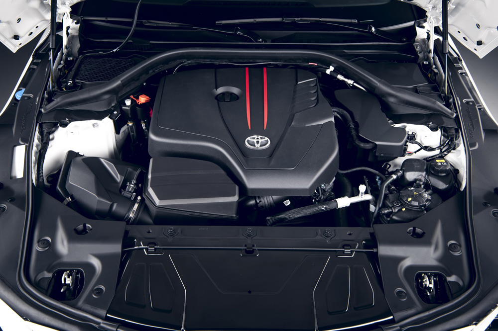 Es decir, el nuevo Toyota GR Supra 2.0 es 82 CV menos potente y tiene 100 Nm menos de par que el GR Supra 3.0 (este entrega 340 CV y 500 Nm). Una diferencia que palía con una disminución de peso de 100 kg gracias al empleo de un bloque de cuatro cilindros en lugar de seis (1.395 kg sin conductor). Una mecánica que, además y gracias a que es más compacta, puede situarse en una posición todavía más retrasada.