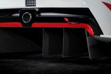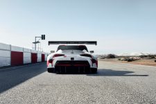 En cuanto al Toyota GR Supra Racing Concept que la compañía asiática a revelado en Palexpo, presenta un kit de carrocería bastante espectacular compuesto por aletas ensanchadas, un difusor trasero y un alerón enorme montado sobre el maletero. El frontal presenta tres entradas de aire y denota las líneas de la versión de producción, así como salidas de aire en el capó, espejos de carreras y ventanillas fijas. Unas llantas monotuerca con neumáticos de pista ponen el broche final.