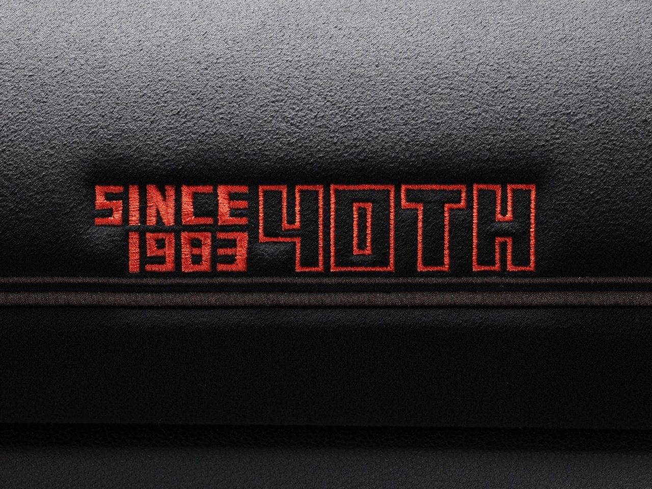 A eso hay que sumar los adhesivos exteriores, que en este caso se sitúan únicamente en la puerta e incluyen la inscripción “Since 1983 40th”. En el habitáculo, esa misma leyenda está bordada en las molduras decorativas de las puertas; mientras que los asientos o las alfombrillas lucen un acabado específico con detalles en rojo.