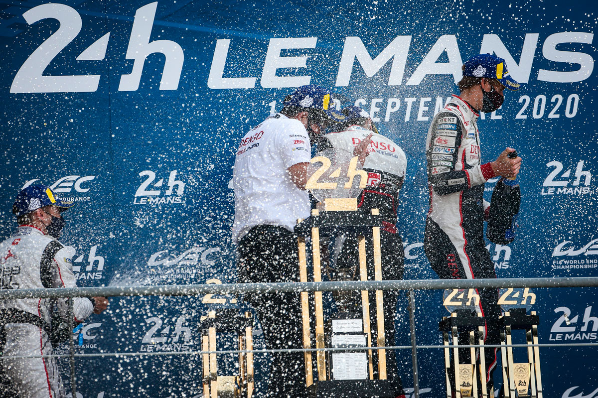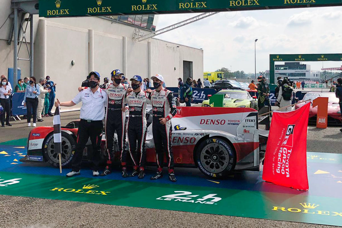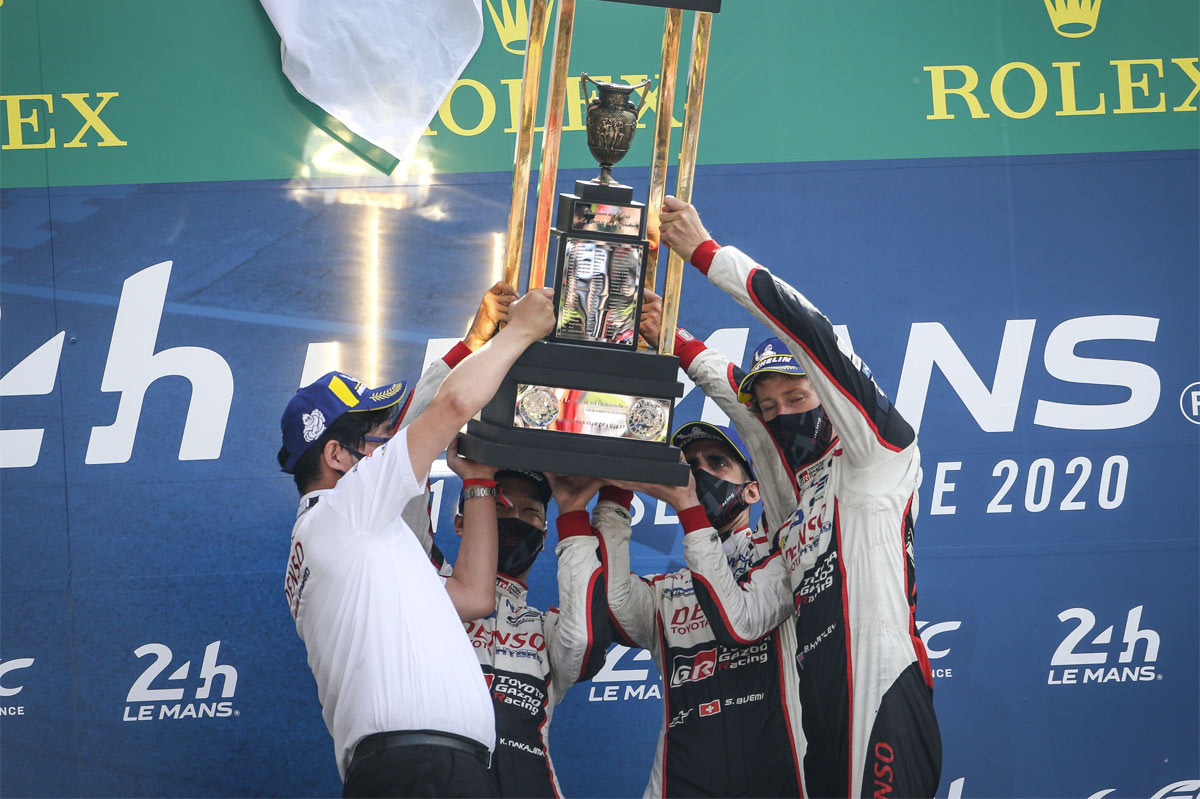 Sin público, sin lluvia y sin casi incidentes, pero, aún así, las 24 Horas de Le Mans 2020 han sido especiales. El Toyota TS050 Hybrid nº8, pilotado por Sébastien Buemi, Brendon Hartley y Kazuki Nakajima, se ha llevado la victoria en La Sarthe tras un día completo de carrera y 387 vueltas. De esta forma, la compañía japonesa consigue la tercera victoria en la mítica carrera de resistencia -las dos anteriores las ganó con el mismo coche, el TS050 Hybrid nº8 y con Fernando Alonso en el equipo-.