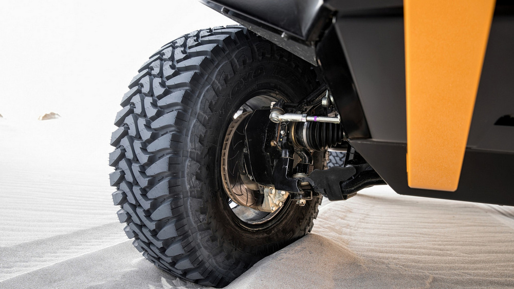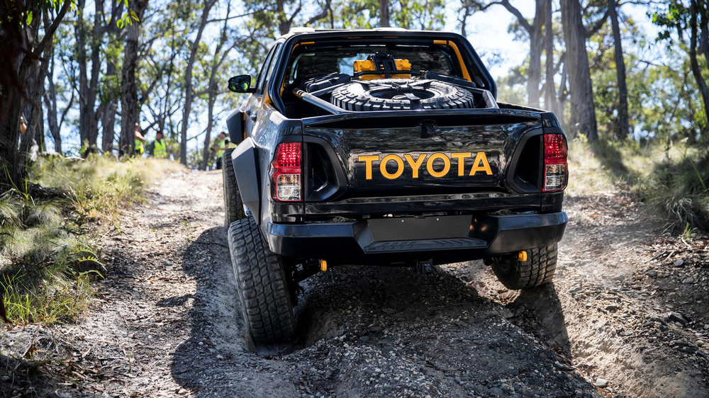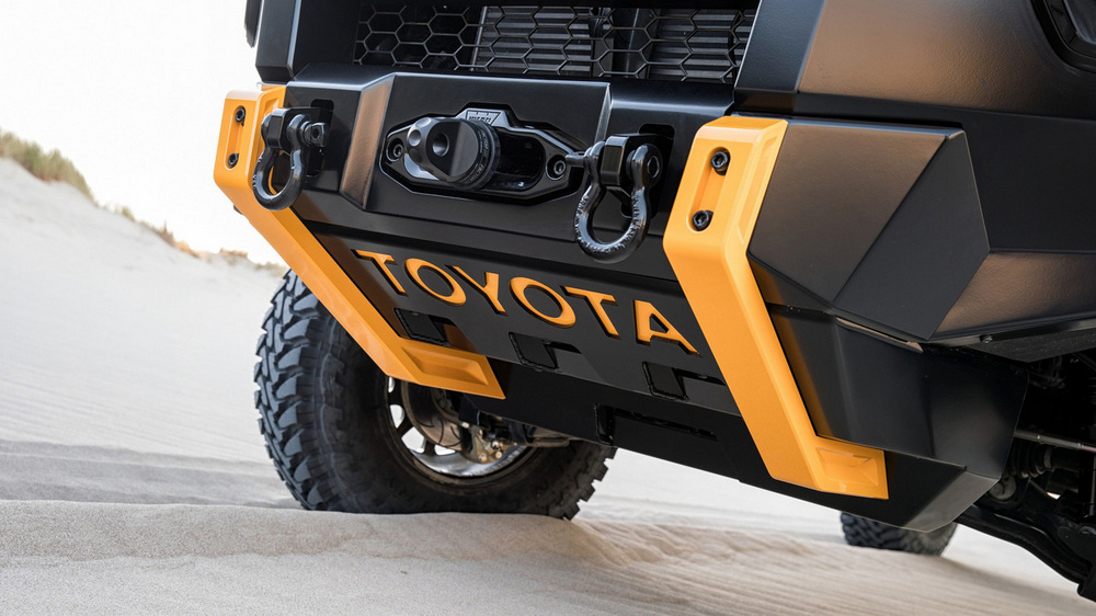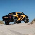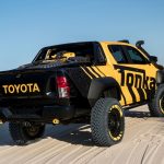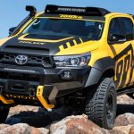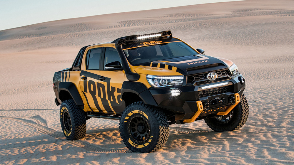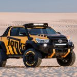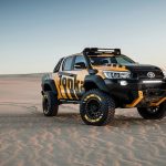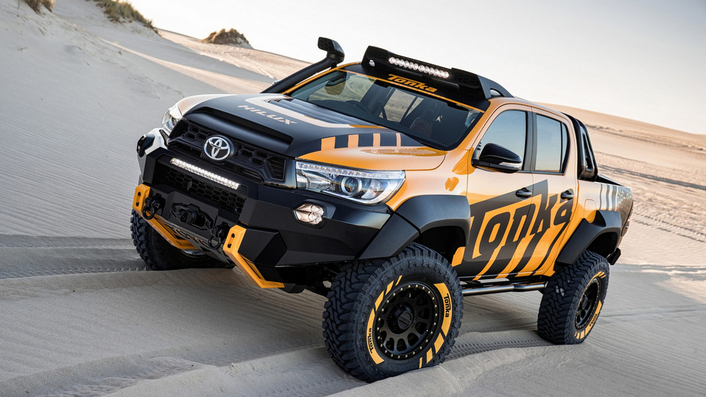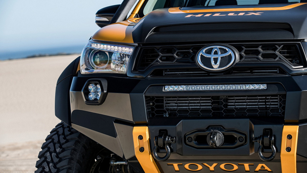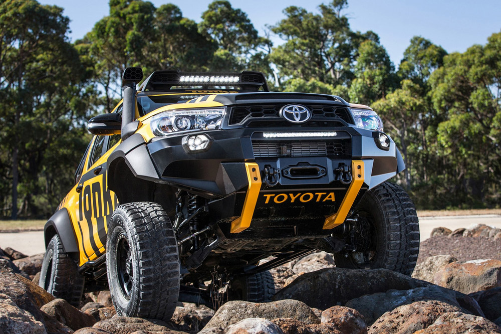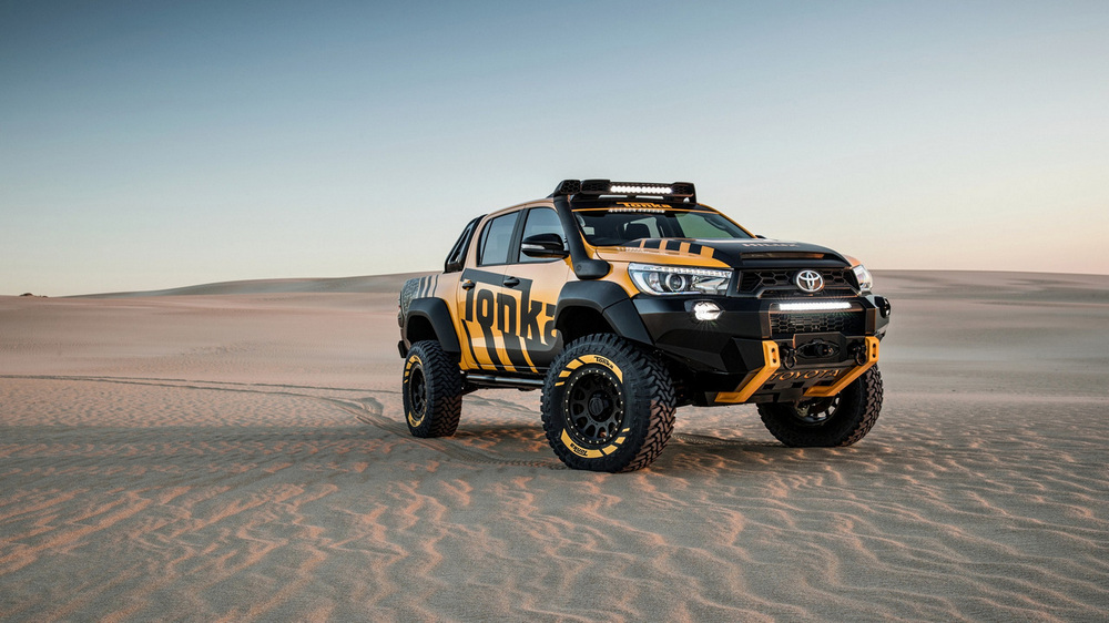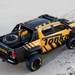 Está construido sobre la base del nuevo Toyota Hilux con carrocería doble cabina y con el motor diésel 2.8 D4-D, un propulsor que por cierto, no se comercializa en España. Además de su llamativa decoración, dispone de múltiples elementos destinados a incrementar sus capacidades todoterreno, tales como los nuevos paragolpes (el frontal integra un cabrestante, luces antiniebla y anclajes de rescate), las taloneras o la estructura tubular situada en la caja de carga, que hace las veces de soporte para transportar repuestos, combustible extra o una rueda de repuesto.