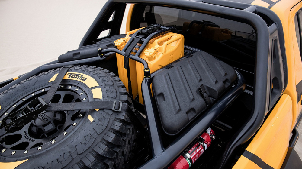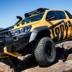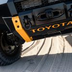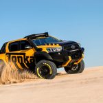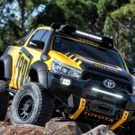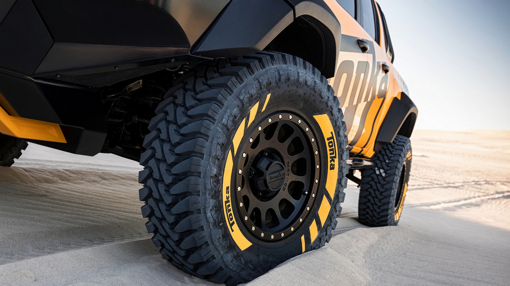 Casi todos los elementos que incorpora el espectacular Hilux Tonka Concept han sido diseñados y creados por el equipo de ingenieros que la firma nipona tiene en Australia dedicado al desarrollo de componentes. Así, cuenta con un kit de suspensiones que, junto con los nuevos neumáticos de mayor diámetro, permite que la altura libre al suelo se haya visto incrementada en nada menos que 150 mm, lo que unido a los nuevos paragolpes delanteros y traseros, supone una sustancial mejora en los ángulos todoterreno del vehículo.