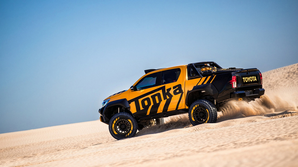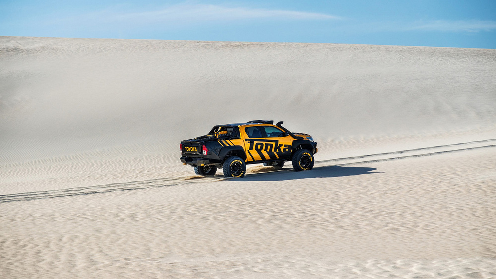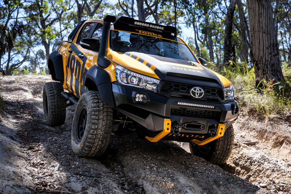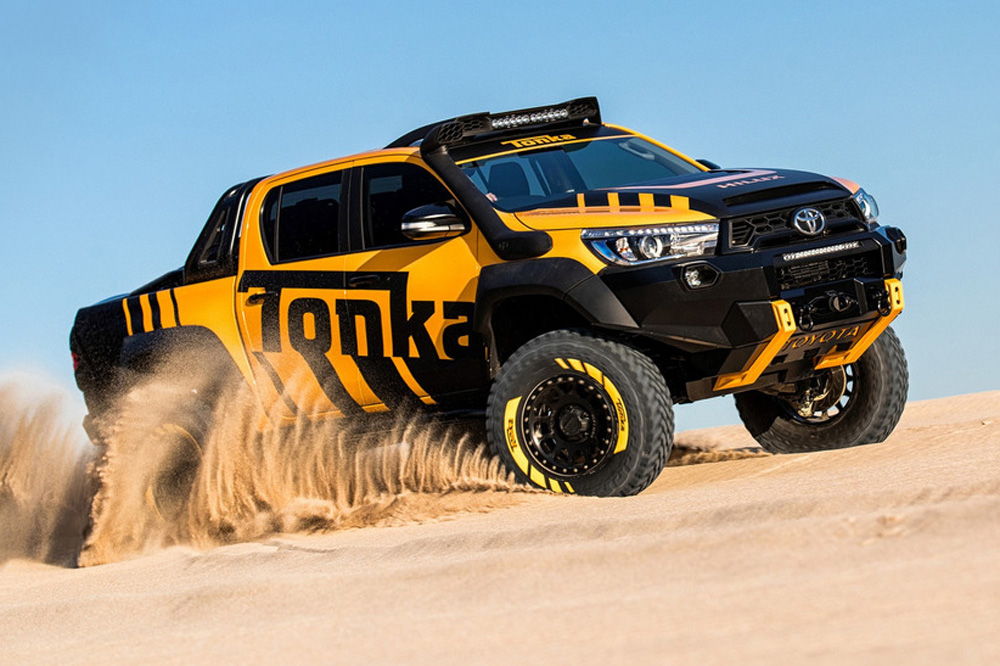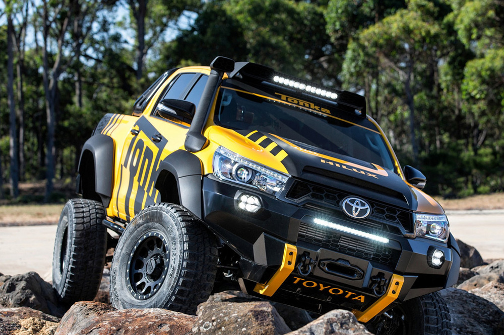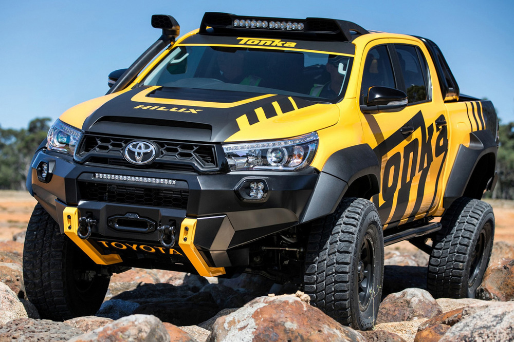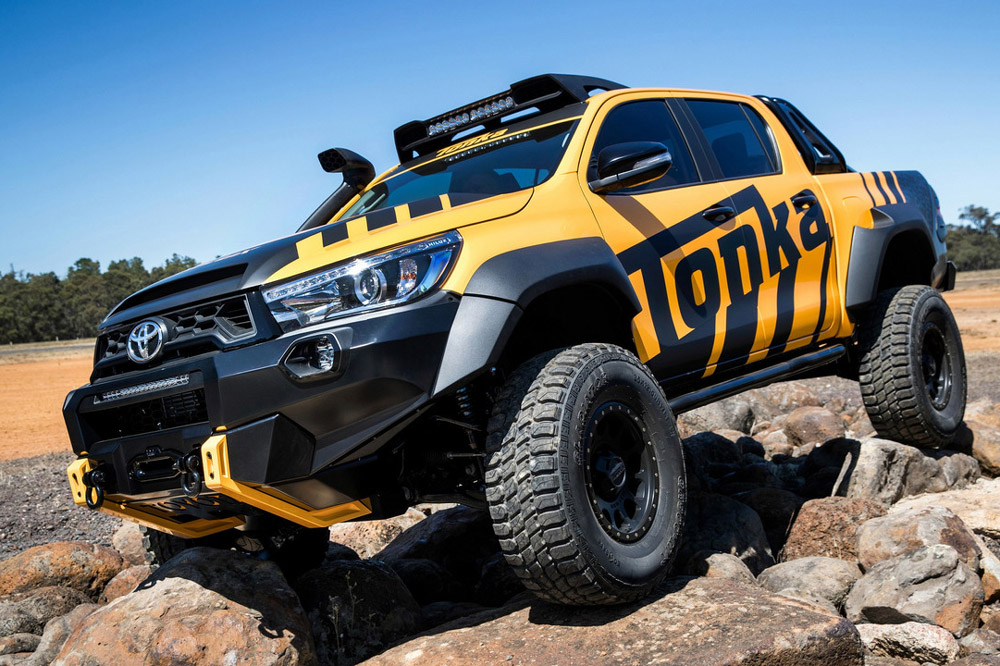 Toyota ha presentado en Australia al nuevo Toyota Hilux Tonka Concept, un colosal pick-up que ha sido diseñado y construido en el país inspirándose en las creaciones Tonka, el famoso fabricante de coches de juguete, que este año celebra el 70 aniversario desde su nacimiento. Además, sirve como conmemoración del 80 aniversario de Toyota y del récord de ventas alcanzado por el modelo de la firma japonesa, que en Australia logró situarse en 2016 como el vehículo más vendido del país.