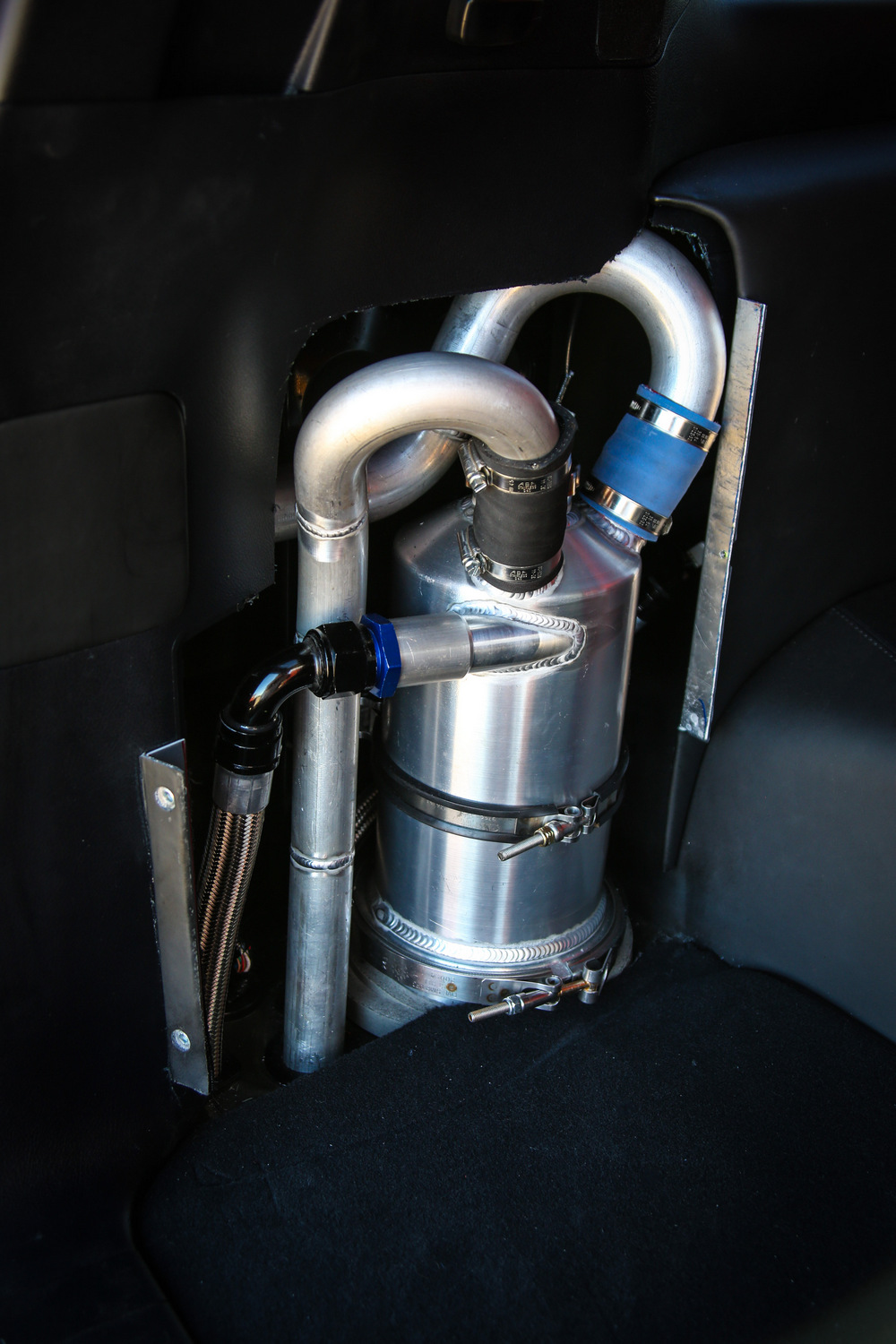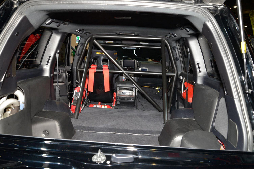 El habitáculo del Toyota Land Cruiser 200 más potente del mundo está prácticamente desnudo. Para ahorrar peso y también, para poder montar los elementos de seguridad necesarios para un coche pensado para alcanzar velocidades de vértigo, han eliminado prácticamente todos los componentes del habitáculo, que solo conserva un asiento (el del conductor) y que cuenta con una robusta jaula de seguridad.