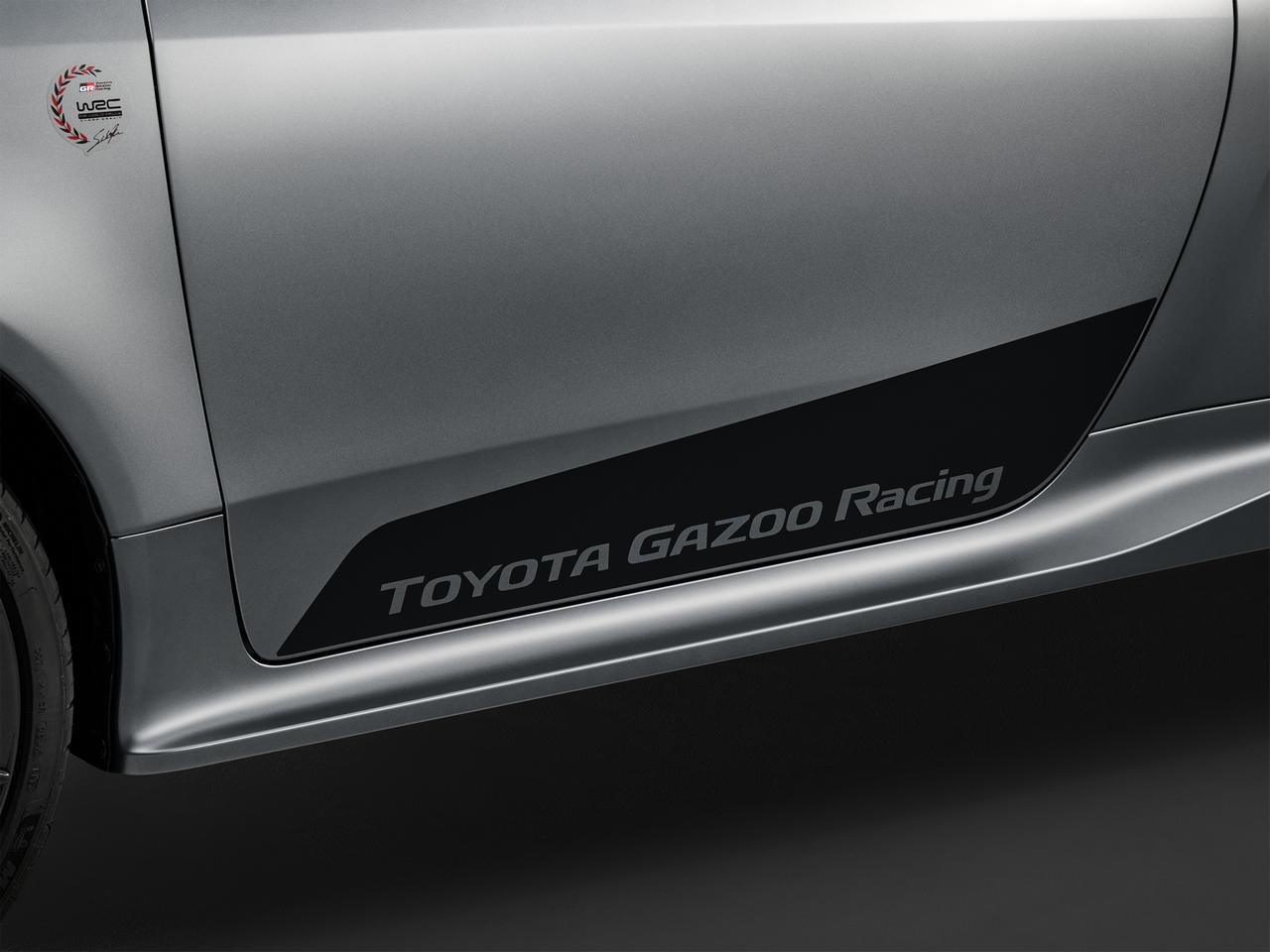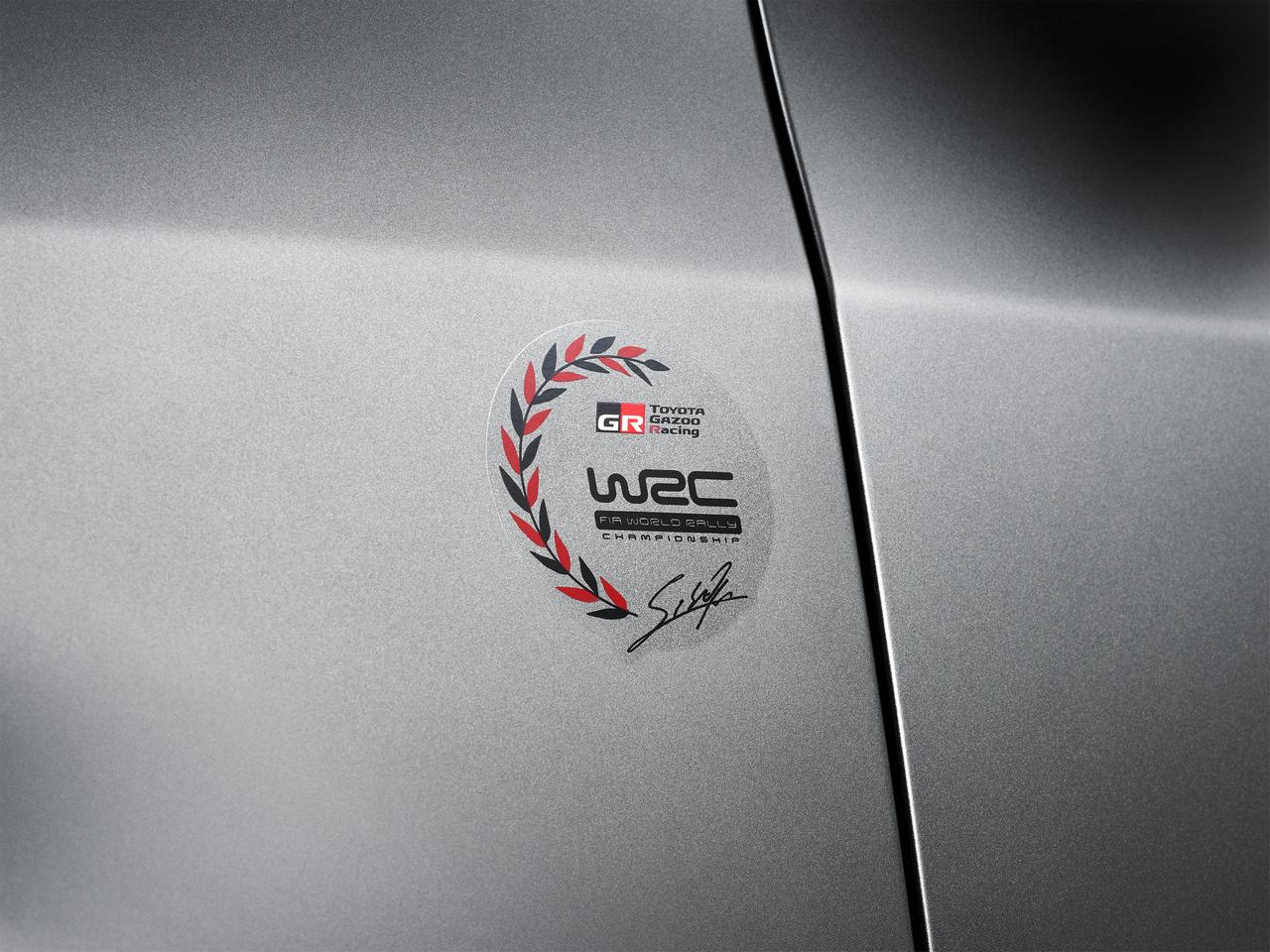 Otros detalles estéticos son los adhesivos conmemorativos del Campeonato del Mundo de Rallyes que luce sobre sus aletas delanteras; otros con la leyenda Toyota Gazoo Racing presentes en ambas puertas; y el logotipo identificativo Ogier Edition que luce en el portón del maletero.
