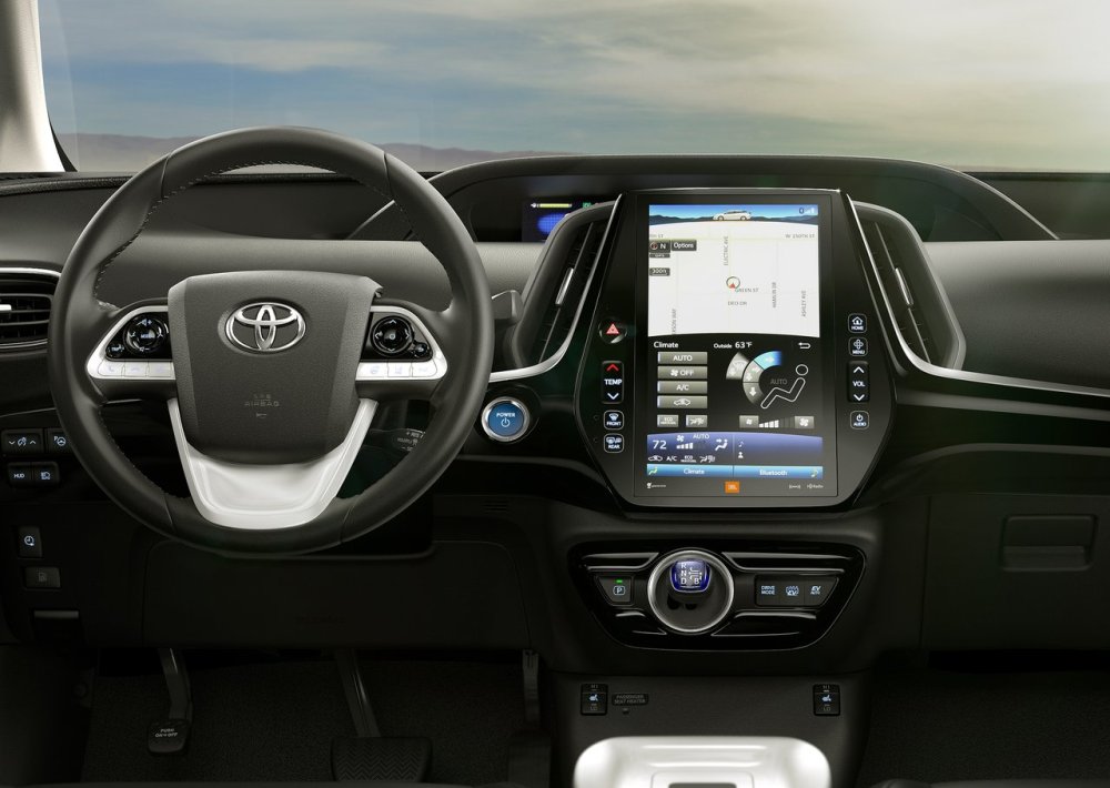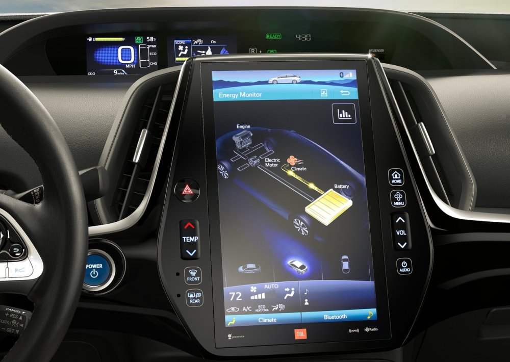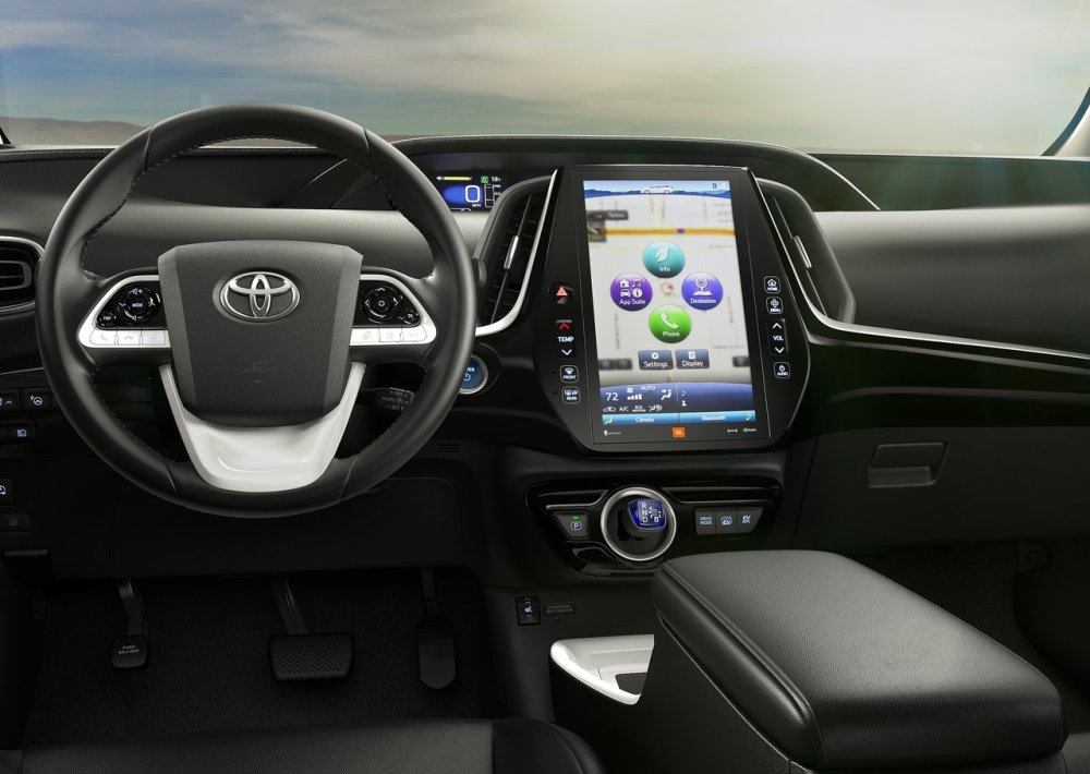 En el habitáculo del Toyota Prius híbrido enchufable también se registran algunos cambios de cierto tarado, como en el salpicadero, donde ahora lo corona una pantalla táctil de 11,6 pulgadas en disposición vertical. Esta permite controlas las diferentes funciones del sistema de infoentretenimiento, el cual incorpora las últimas soluciones en conectividad. También está disponible un Head Up Display a color y un equipo de sonido firmado por JBL.