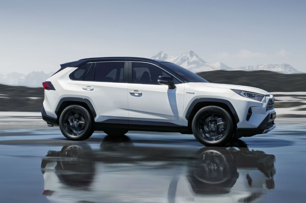 El empleo de la plataforma TNGA también ha afectado a nivel estético al Toyota RAV4 híbrido, que ve como su altura libre al suelo se incrementa en 15 mm mientras que se recortan sus voladizos (-5 mm delante y -30 mm detrás), así como su longitud total (-5 mm), mientras que la distancia entre ejes se amplía hasta los 2.690 mm (+30 mm) y la anchura hasta los 1.855 mm (+10 mm). Esto repercute en el habitáculo, que gana espacio tanto para los ocupantes como para el maletero, que con una longitud 60 mm superior tiene 79 litros más de capacidad que el modelo actual.