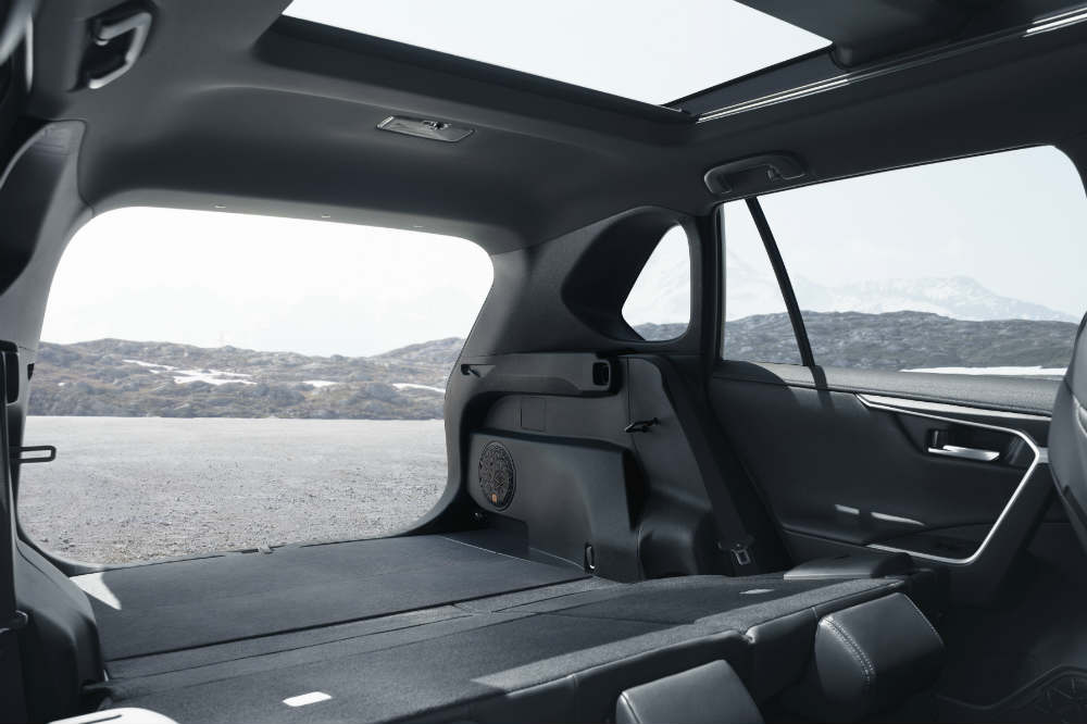 El Toyota RAV4 Híbrido tendrá una dotación de serie formada por llantas de aleación de 17 pulgadas, faros delanteros LED, raíles en el techo, arranque por botón, consola central de 7 pulgadas y pantalla TFT de 4,2 en el cuadro de instrumentos. Como extras se pueden añadir llantas de mayor tamaño, cristales oscurecidos, acceso sin llave o portón trasero; mientras que acabados como el Feel! sumarán detalles exclusivos como la carrocería bitono. Mención aparte merecen el retrovisor interior, que puede funcionar como uno convencional o como uno digital mostrando lo que capta la cámara trasera de alta definición; el Monitor de Visión Panorámica de 360 grados y el Toyota Safety Sense mejorado, que amplía algunas de sus funciones como el Sistema de Seguridad Precolisión, el Control de Crucero Adaptativo o el mantenimiento de trayectoria.