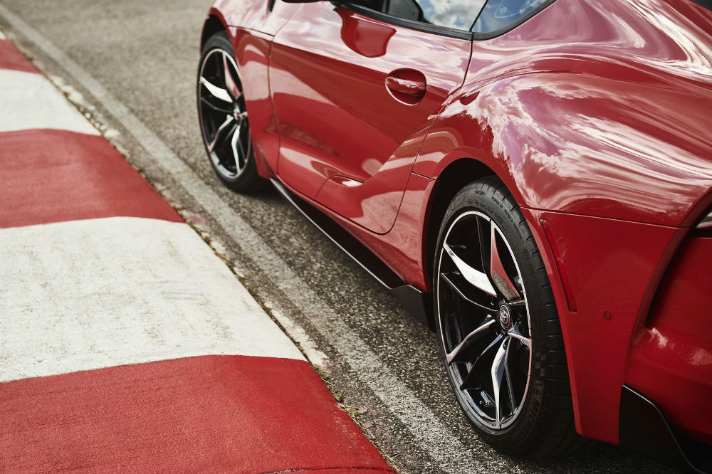 El Toyota Supra es un modelo excesivamente largo, ya que tiene una longitud de 4.380 mm, y la gran parte de ella va destinada a la distancia entre ejes, que es de 2.460 mm. Aunque no tenemos el dato de su anchura ni su altura, va bastante pegado al suelo, lo que rebaja el centro de gravedad y, si a esto se suma que su peso (alrededor de 1,5 toneladas) está repartido al 50/50 entre ambos ejes, promete una conducción divertida.