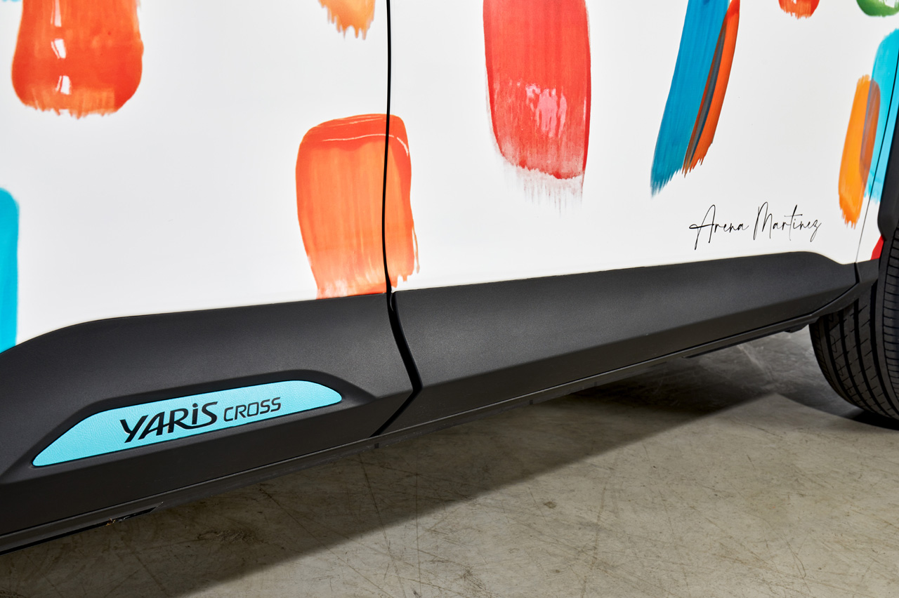 El Toyota Yaris Cross by Arena Martínez es por tanto un verdadero ‘Art Car’, un lienzo sobre ruedas en el que esta diseñadora ha trabajado intensamente. Arena, que nació en Madrid en 1993, forma parte de una familia de amantes del arte. De hecho, su padre es Paco Celorrio. Conocido artísticamente como ‘Papartus’, su figura ha sido clave a la hora de dar forma a este proyecto.