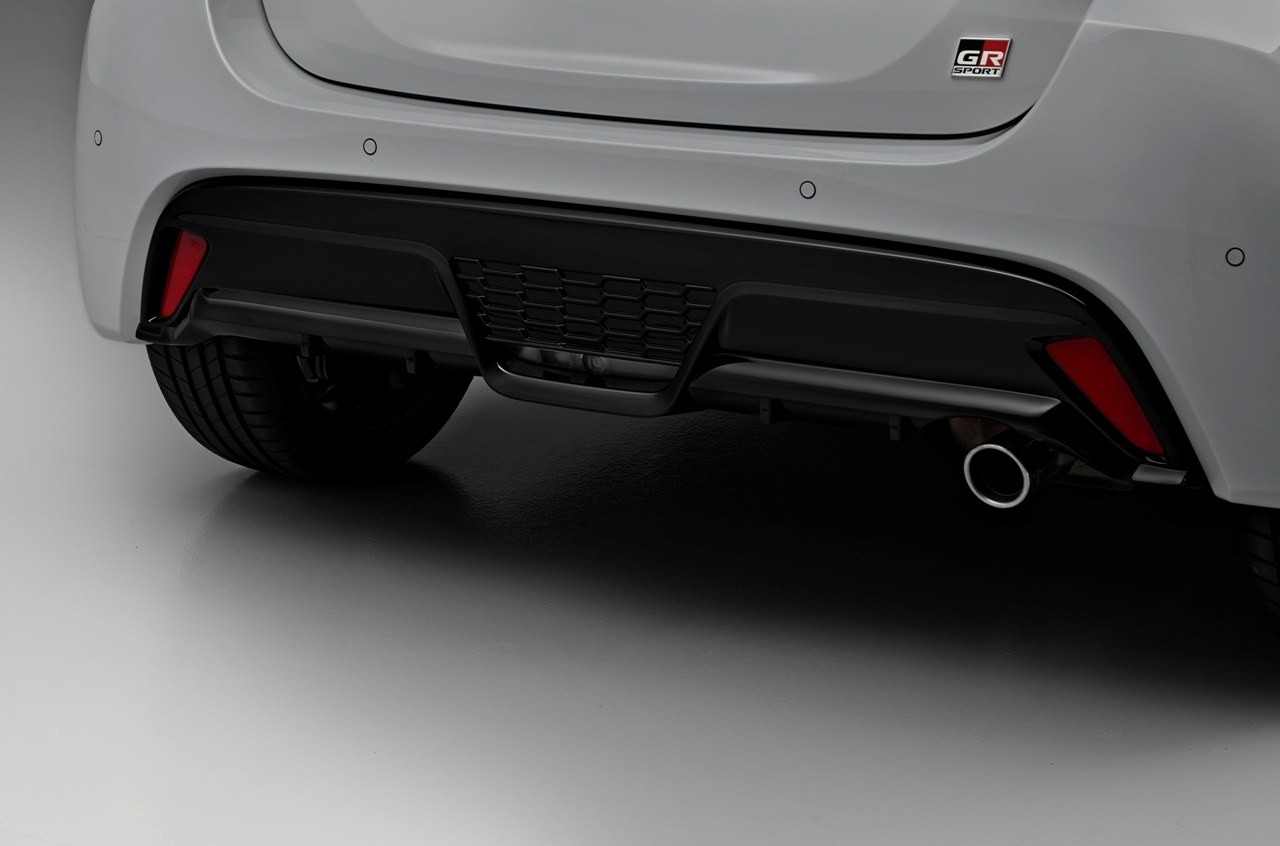 El exterior del nuevo Toyota Yaris GR Sport puede estar disponible en la nueva pintura Gris Dynamic exclusiva de esta versión. Integra algunos detalles en negro, presentes en techo, retrovisores, parrilla, spoiler trasero y parachoques. También destacan las llantas de 18 pulgadas de nuevo diseño con segmentos en rojo mecanizado. Además, la parrilla luce un patrón de panal de abeja con la letra ‘G’ como motivo. La zaga presenta un difusor en forma de T y una salida de escape redonda.