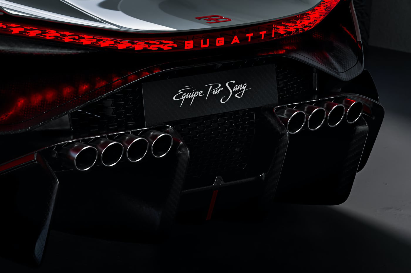 Comenzamos con el último en aparecer, y, quizá, el más extremo. Es el del Tourbillon Équipe Pur Sang, la última edición limitada a 250 unidades, con un precio, cada una de ellas, de 3.8 millones. Tiene ¡ocho salidas de escape! ¡Ocho! Con ello, la imagen de este deportivo con motor atmosférico V16 8.3 apoyado por tres motores eléctricos para rendir 1.800 CV de potencia es aún más brutal.
