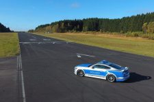 Pero los principales cambios que ha recibido este Ford Mustang de la Policía alemana son mayoritariamente estéticos, ya que el preparador encargado de modificarlo, Wolf Racing, ha apostado por montar un agresivo paquete aerodinámico. Este está compuesto por un nuevo faldón delantero, un difusor trasero diferente, unas taloneras más prominentes, un alerón trasero o unas llantas de 20 pulgadas de diámetro calzadas con unos neumáticos Hankook especialmente desarrollados para la ocasión.