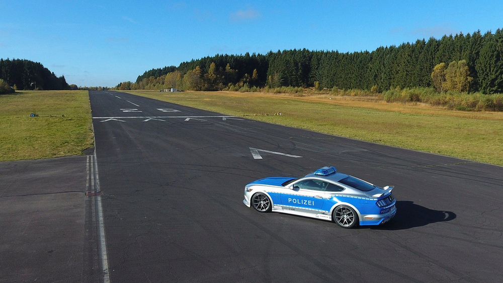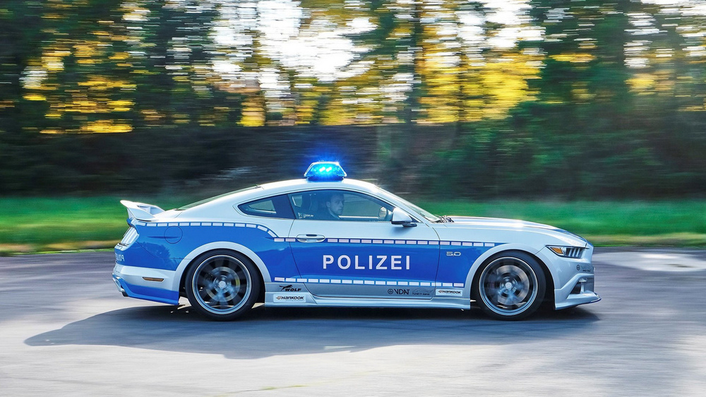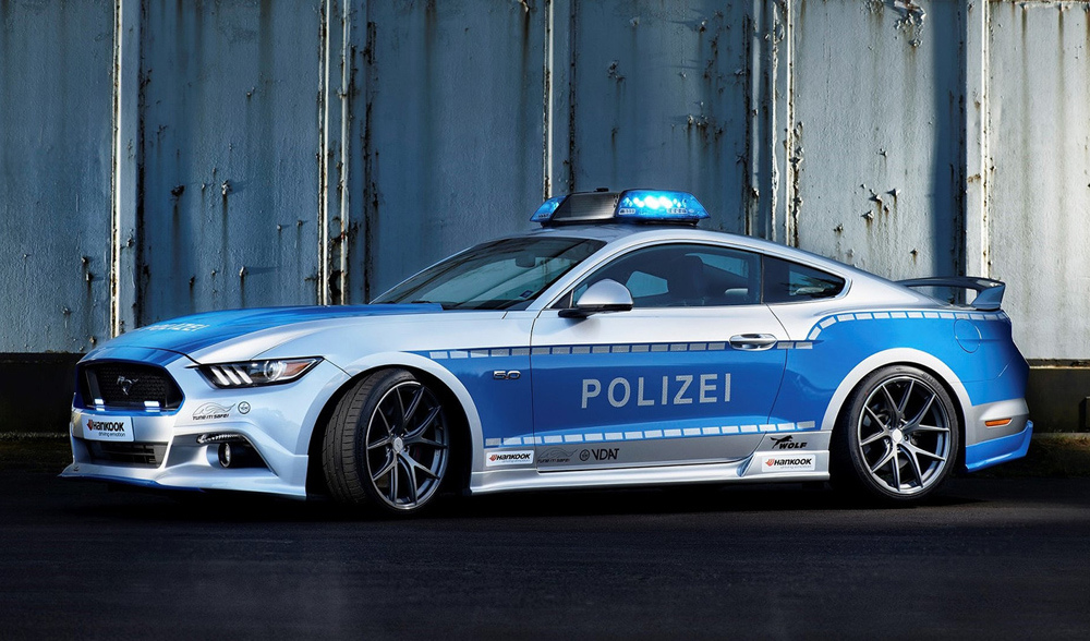 Este Ford Mustang policial ha recibido el nombre de “Wolf Wide 5.0” y está construido sobre la base de un Ford Mustang GT (prueba) con motor 5.0 V8 atmosférico, una mecánica que genera 455 CV y 560 Nm de par. Con ese rendimiento, este coche patrulla promocional sería un excelente vehículo para dar caza a los infractores en las Autobahn alemanas, pues es capaz de pasar de 0 a 100 km/h en 4,3 segundos y de alcanzar una velocidad máxima de 268 km/h. Esto supone una ligera mejora con respecto a un Mustang GT de serie, que se conforma con 421 CV y con 530 Nm de par.