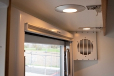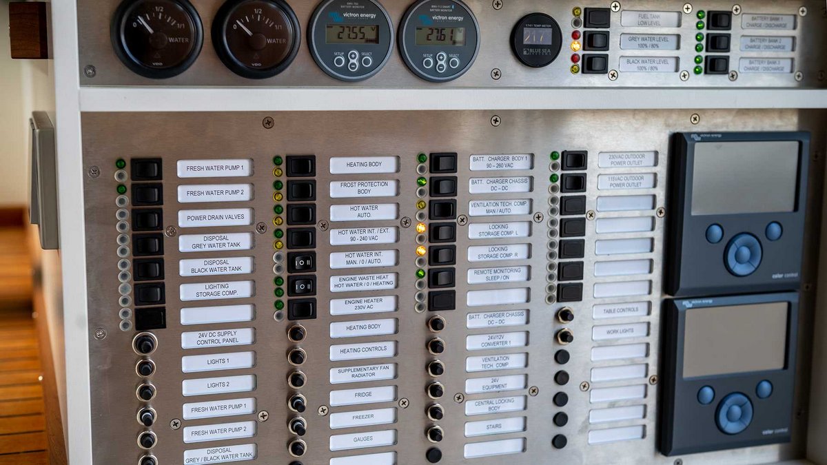 Al módulo vivienda de este increíble camión camper se puede acceder desde el exterior a través de una escalera con tres peldaños. También puedes entrar directamente desde la cabina pasando por una pequeña trampilla. Está construido con una combinación de paneles sándwich de fibra de vidrio y estructura de acero.