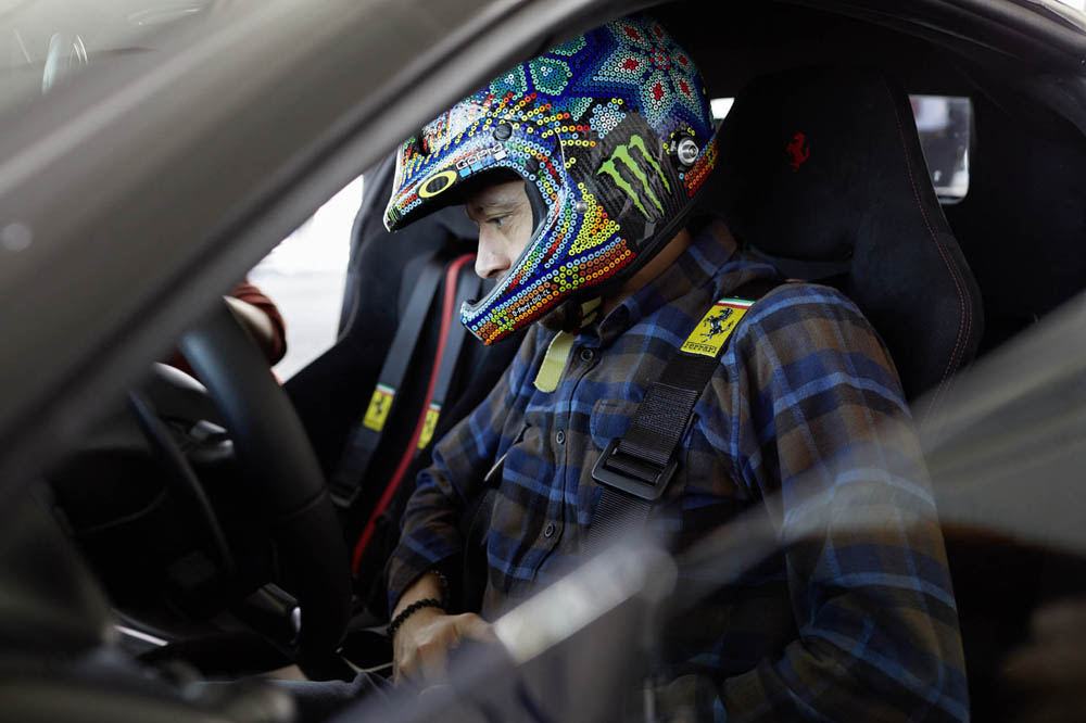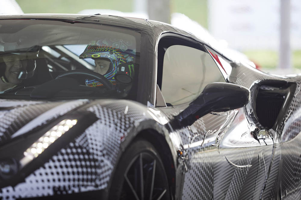 En este caso, Valentino Rossi prueba el Ferrari 488 Pista, la última serie limitada de la firma italiana. Presentado entre las novedades del Salón de Ginebra 2018, el nuevo Ferrari 488 Pista representa a la variante más radical y exclusiva de la gama del 488. Es un bólido de calle especialmente diseñado para dar lo mejor de sí en circuito, para lo cual no solo cuenta con una mecánica con 720 CV de potencia y 770 Nm de par, también con una aerodinámica optimizada para incrementar el apoyo.